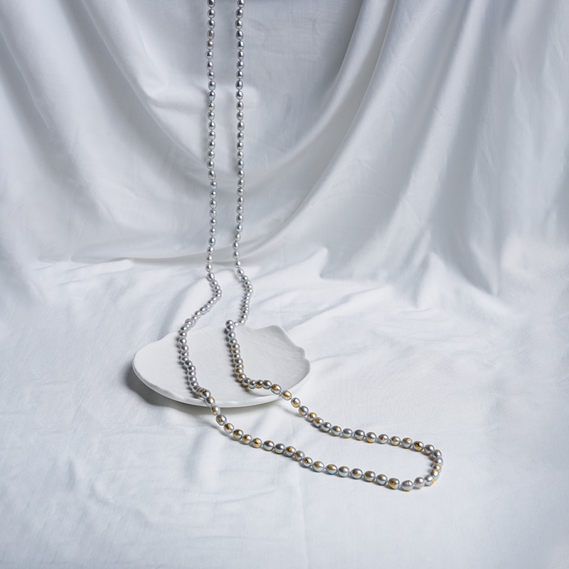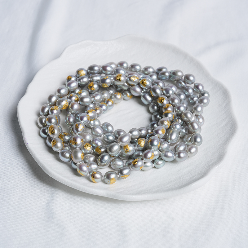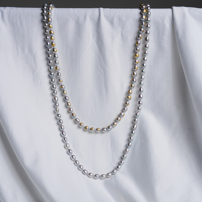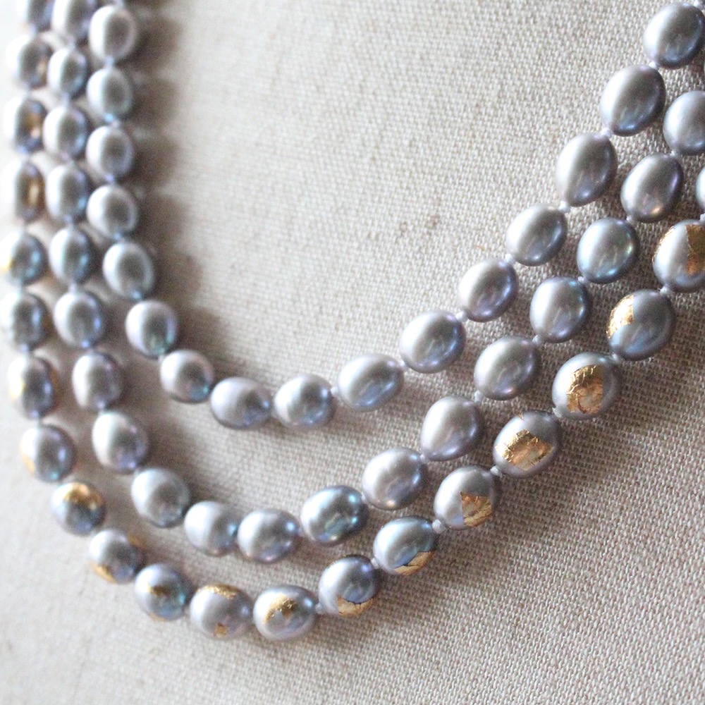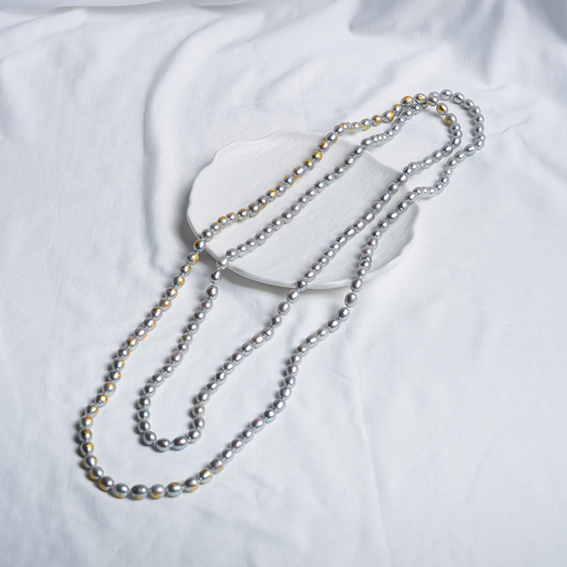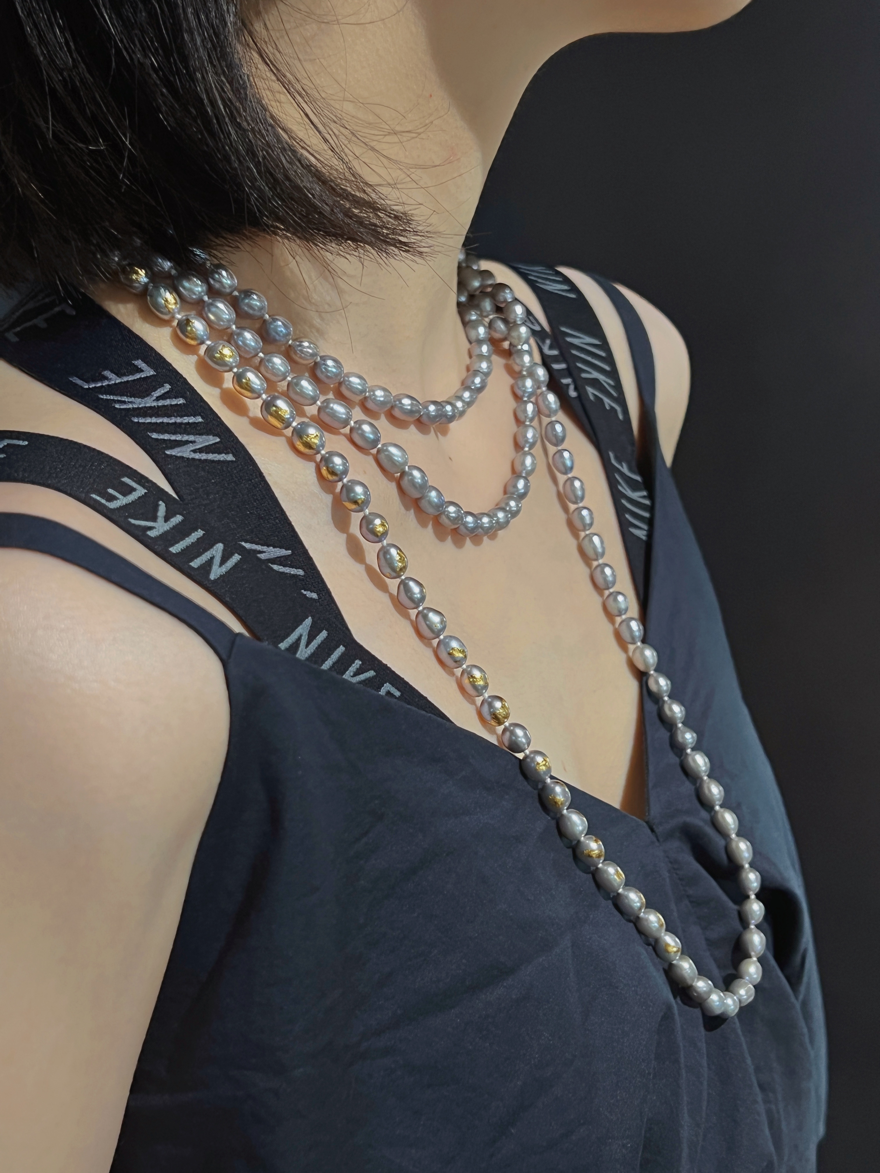 北京仓|KARAFURU-Iwai-淡水银灰珍珠 金箔 长项链(多种戴法)[日本设计师]