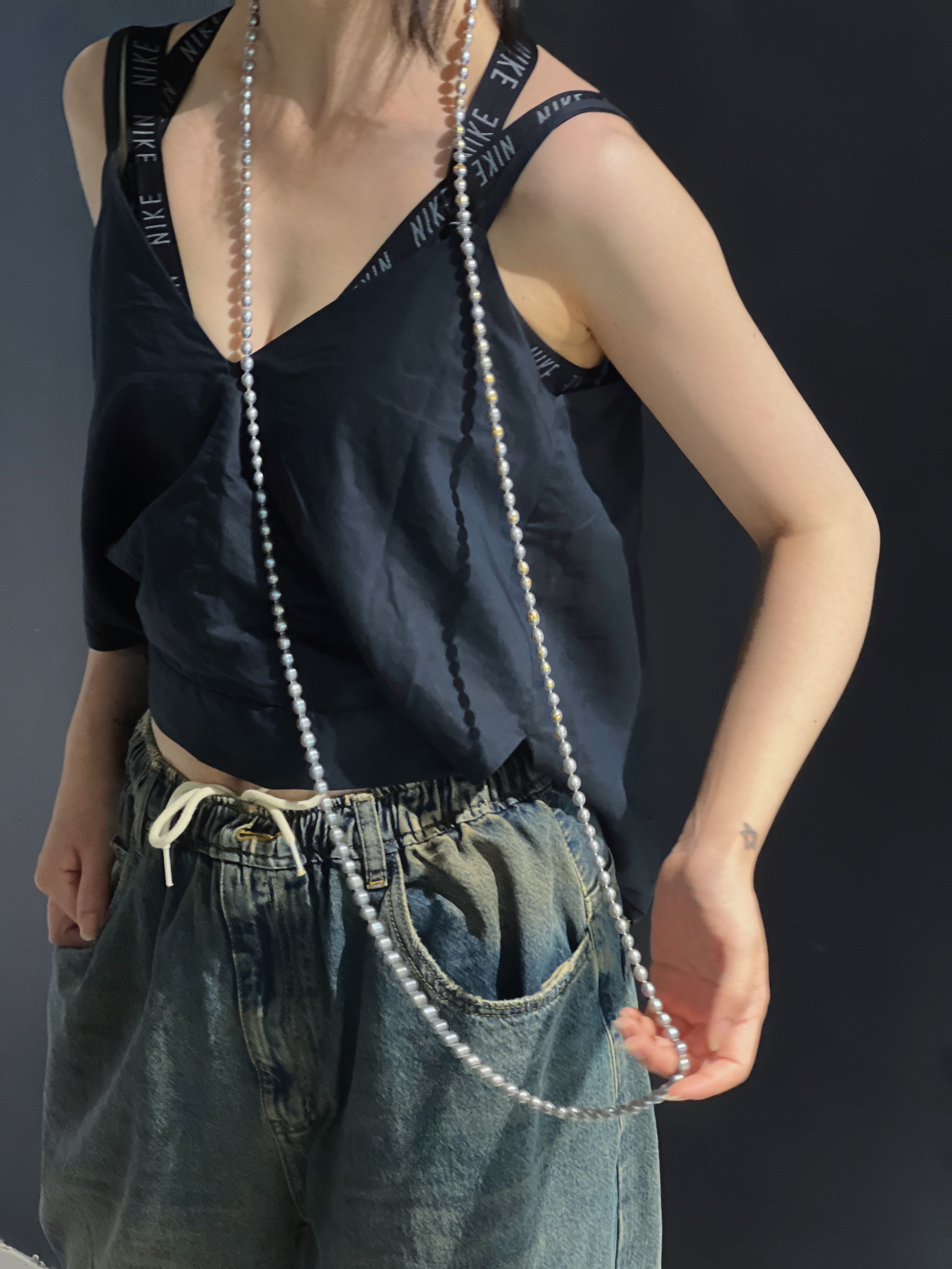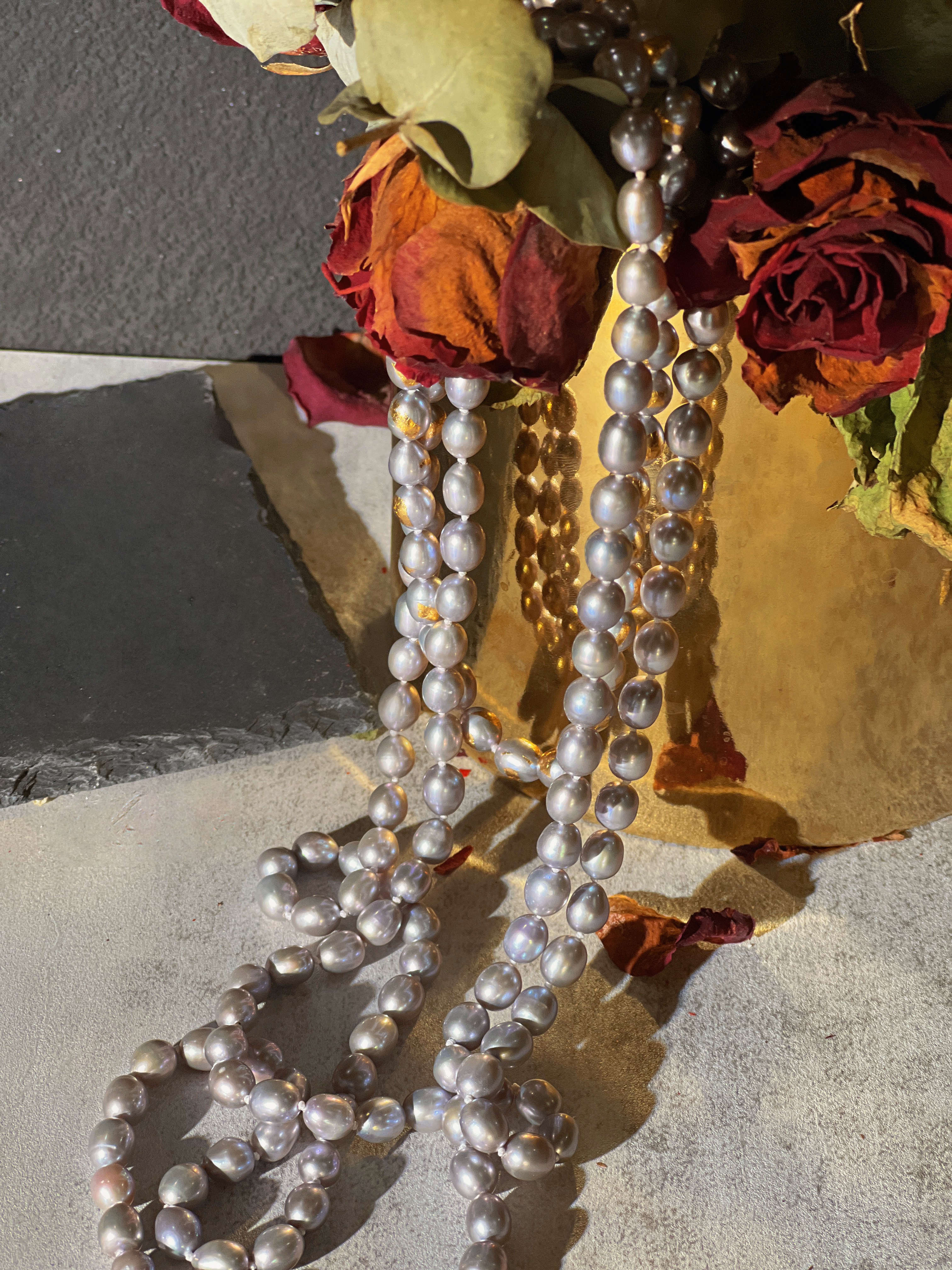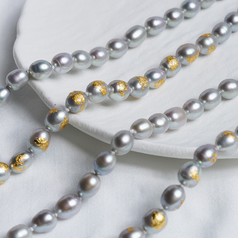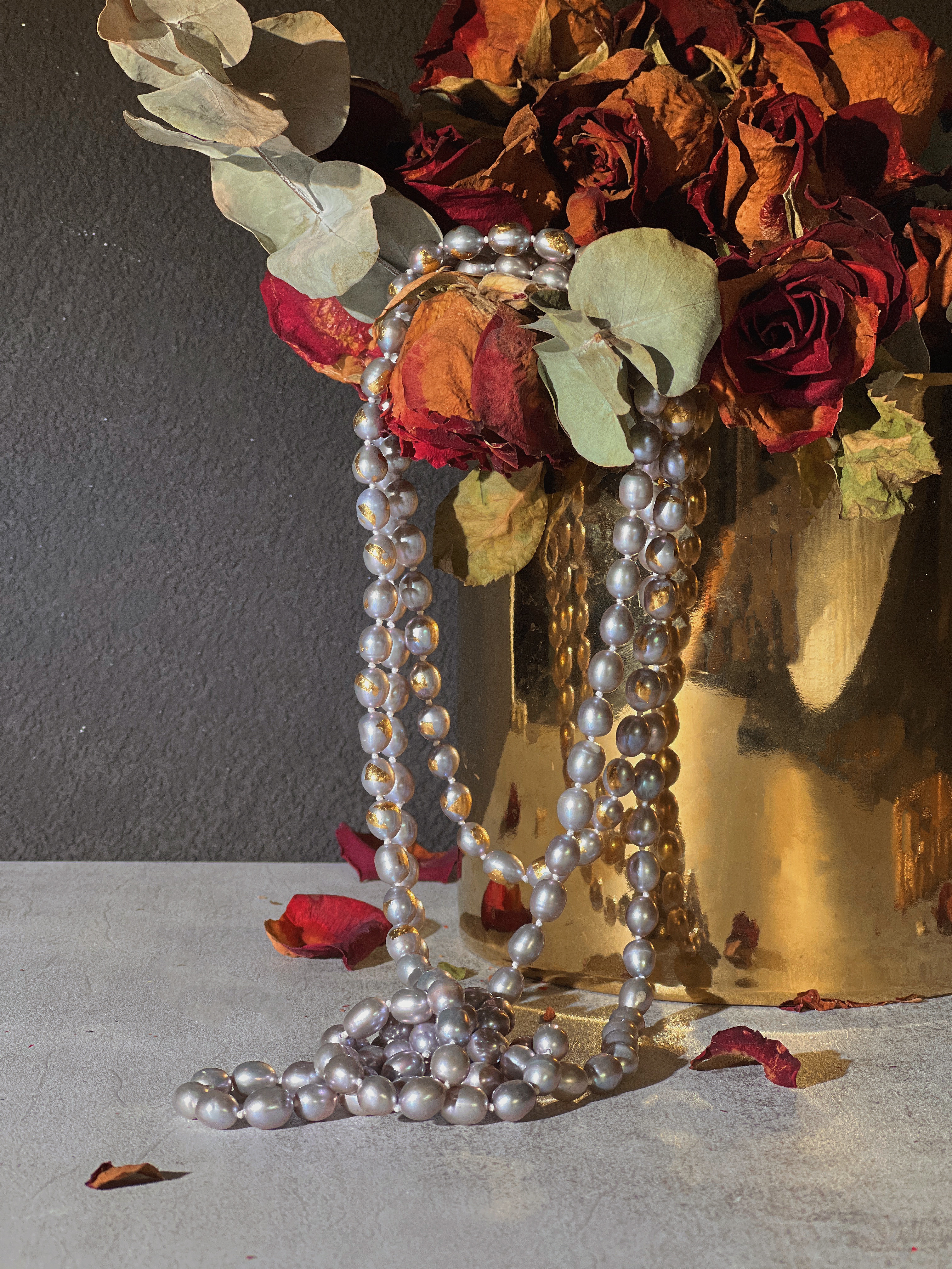 北京仓|KARAFURU-Iwai-淡水银灰珍珠 金箔 长项链(多种戴法)[日本设计师]