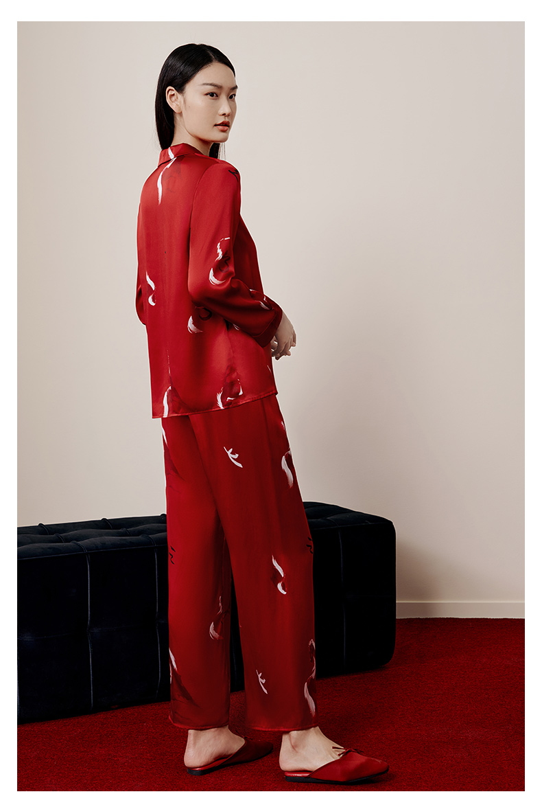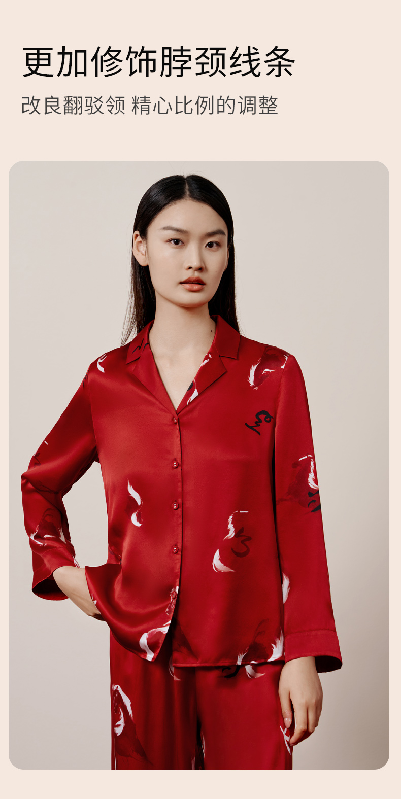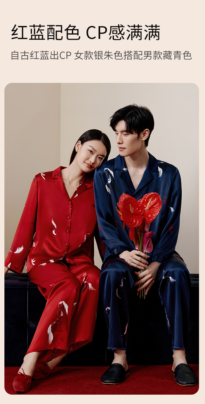 一起红】金三塔真丝红色睡衣情侣100%桑蚕丝新年本命年结婚家居服 YSFFD203+YSMFD203