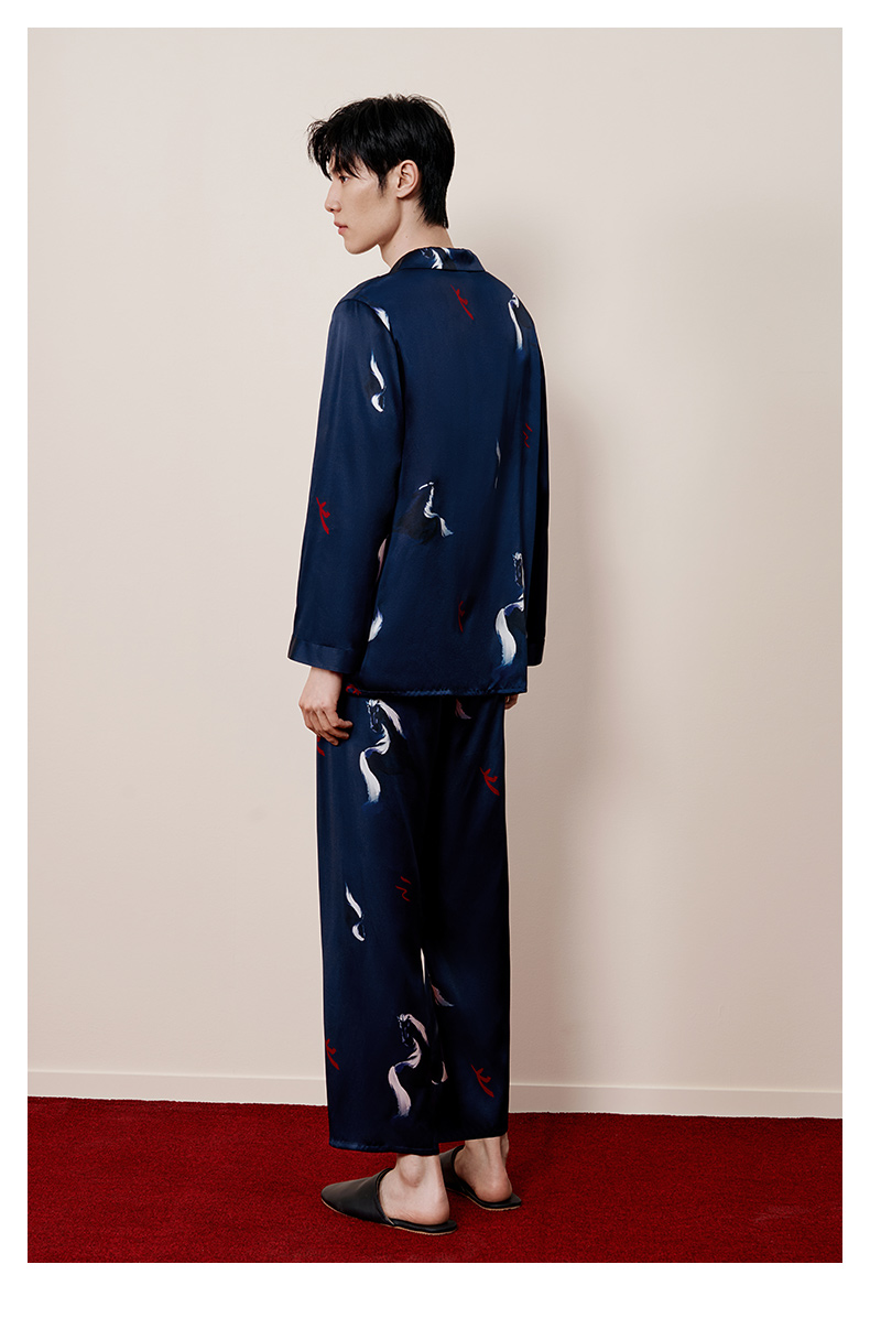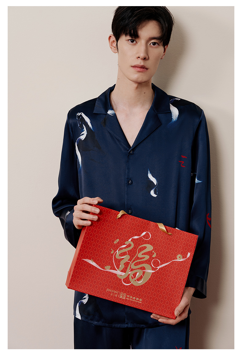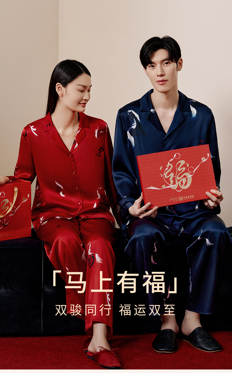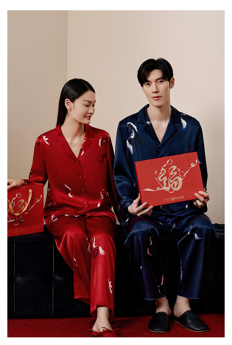 一起红】金三塔真丝红色睡衣情侣100%桑蚕丝新年本命年结婚家居服 YSFFD203+YSMFD203