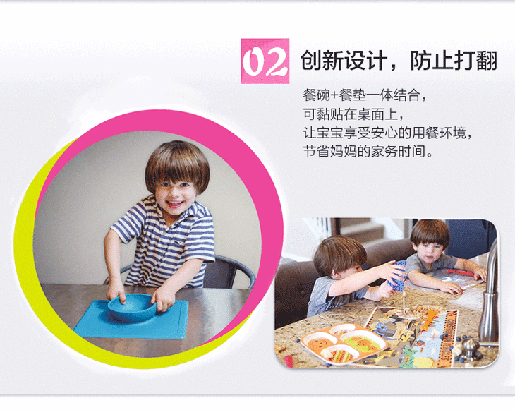 【文怡之选】美国 EZPZ儿童硅胶餐具Happy Bowl 一体式餐垫碗 四色可选