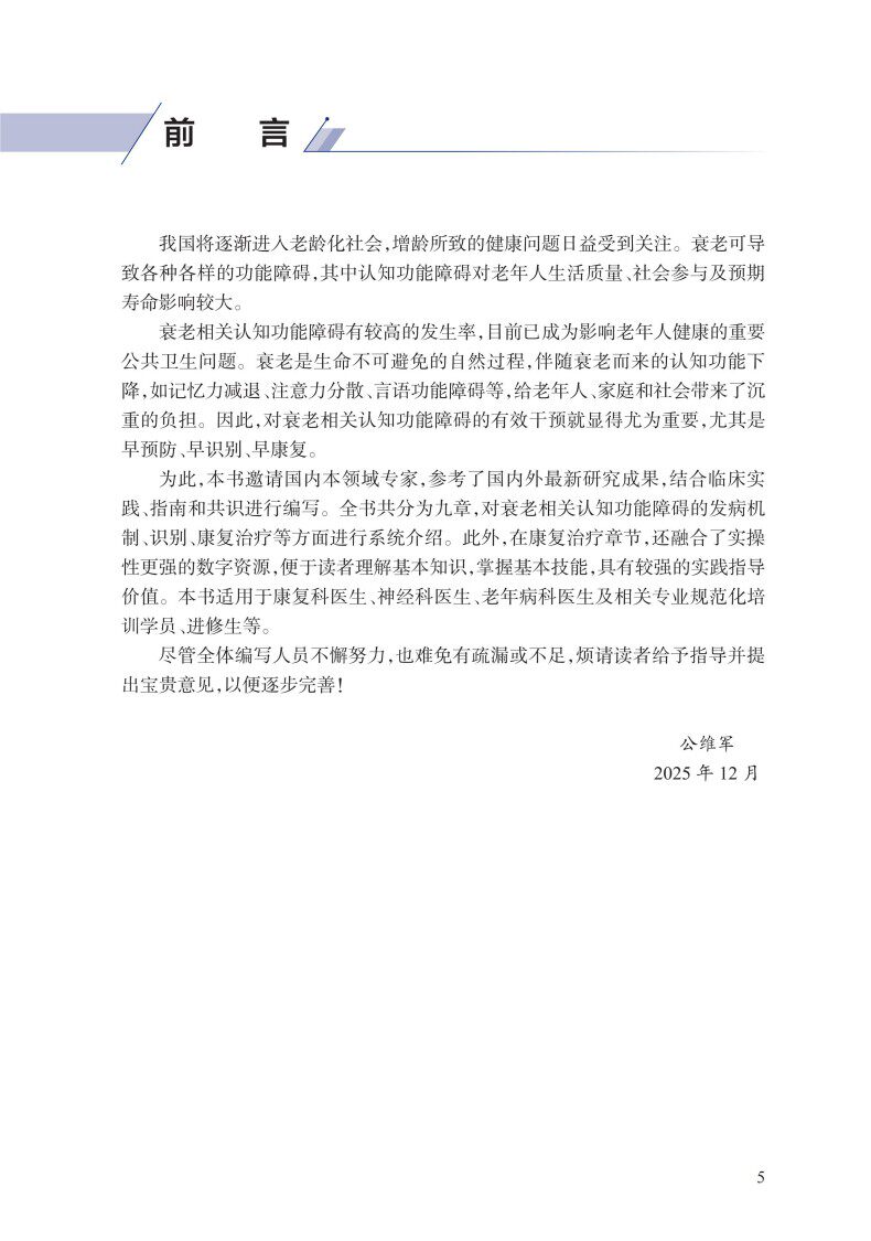 书名:衰老相关认知功能障碍识别与康复