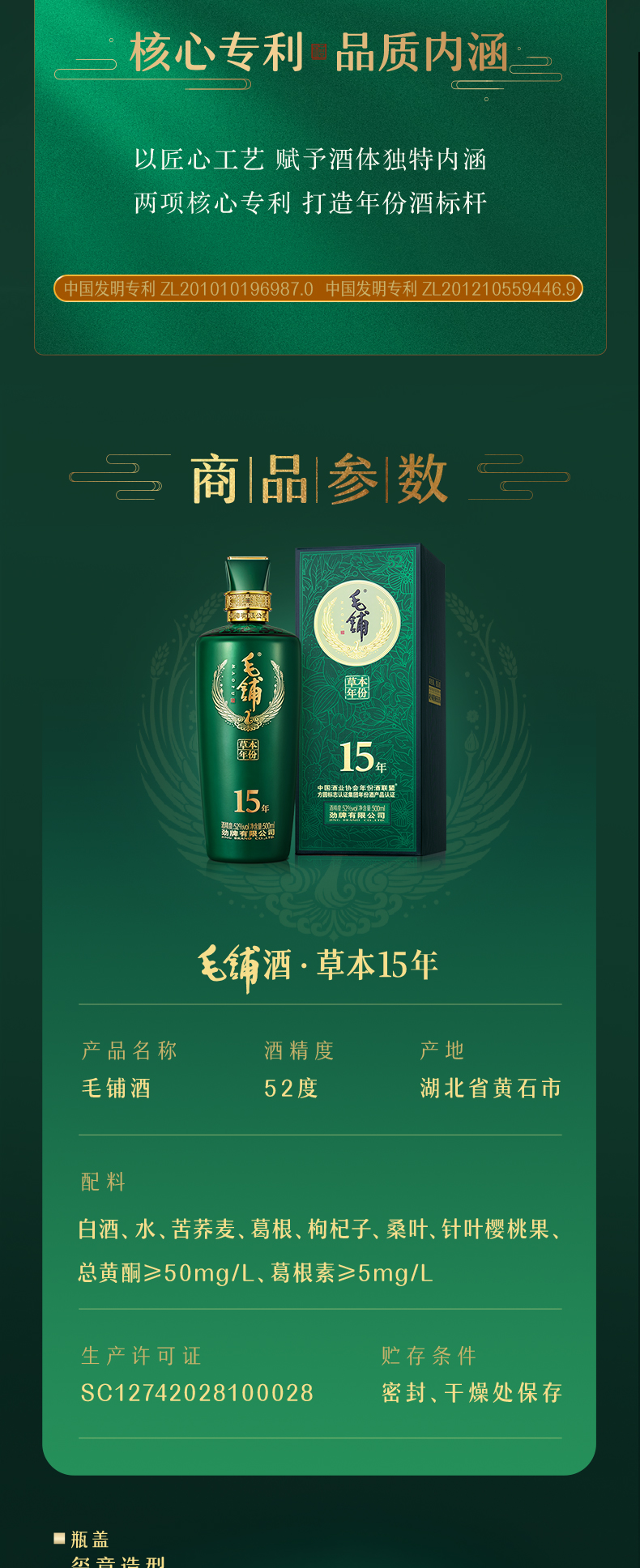【标准版】500ml52度毛铺酒·毛铺草本年份酒15年