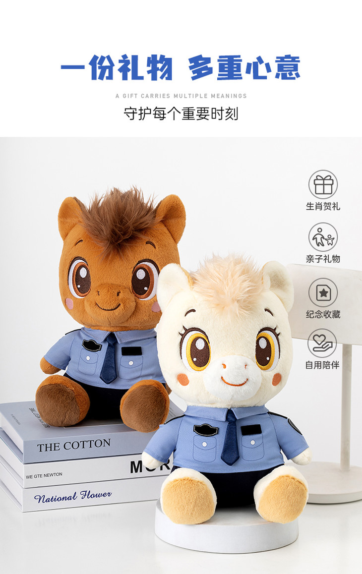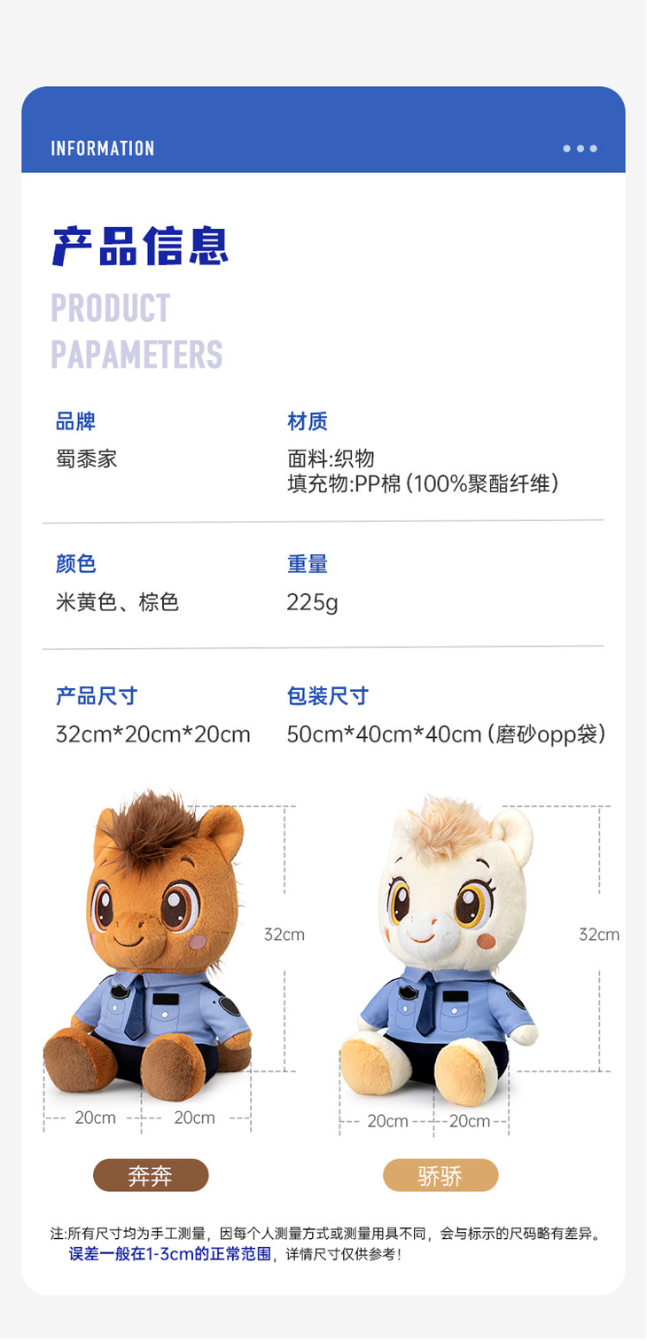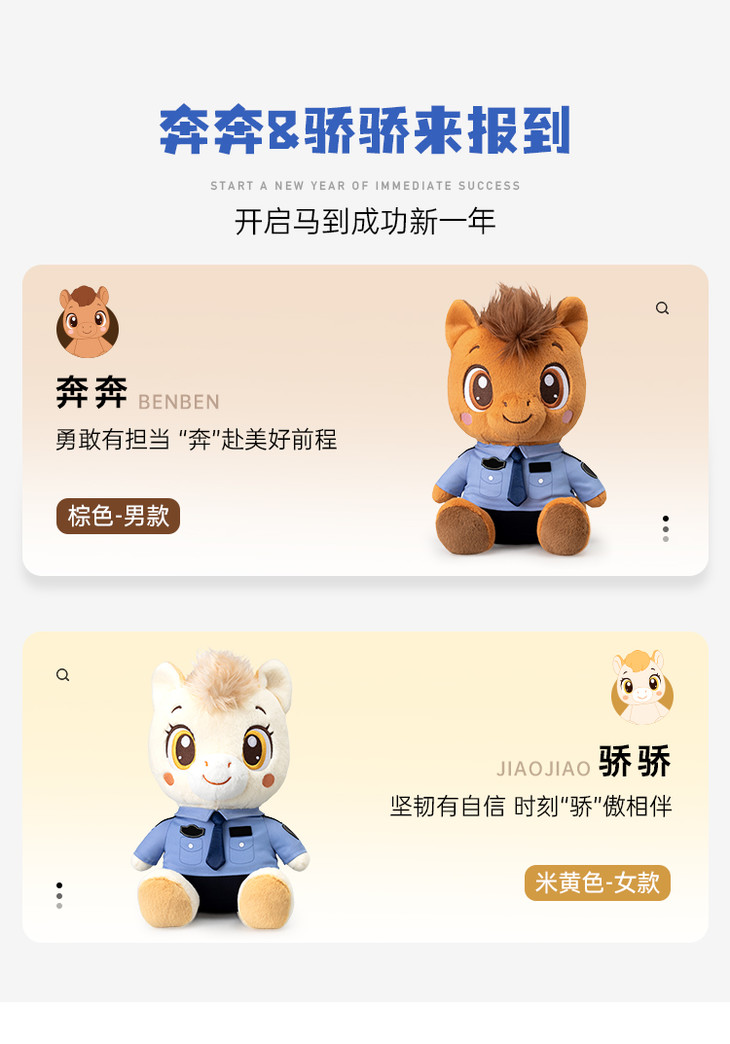 【蓝衬款奔奔&骄骄】毛绒公仔玩具儿童毛绒玩偶布娃娃马年送礼生肖礼品礼物