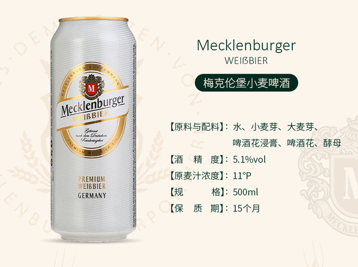 【整箱24听】德国进口梅克伦堡小麦啤酒500ml*24