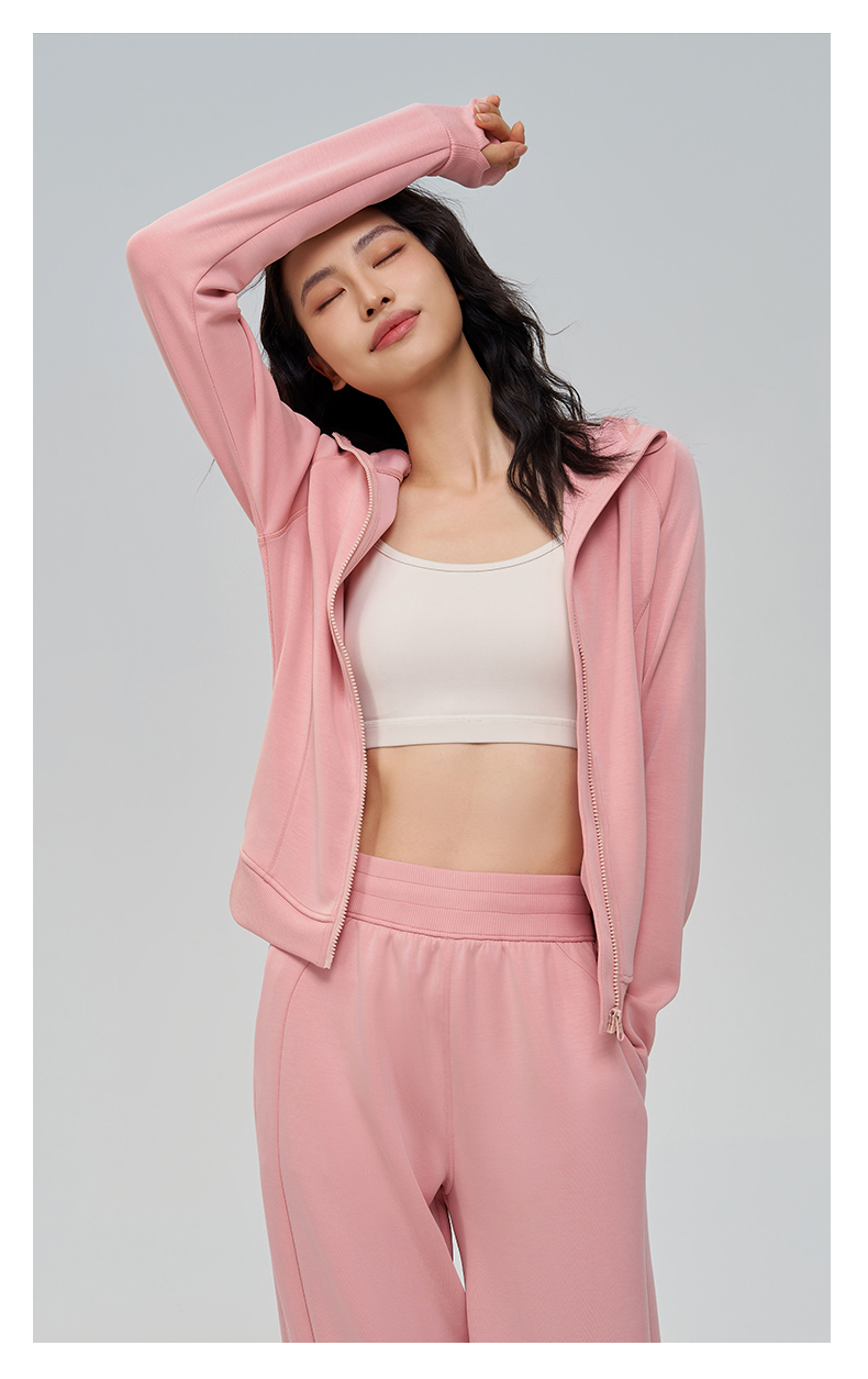 SMOEDOD/水沐伊朵秋冬拉链连帽运动外套亲肤抗皱柔软显瘦50137