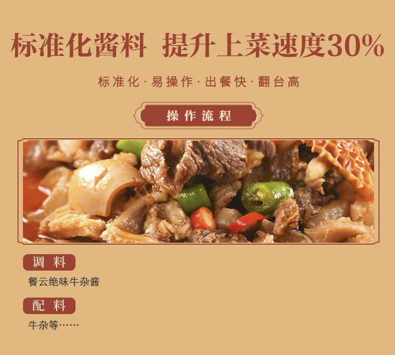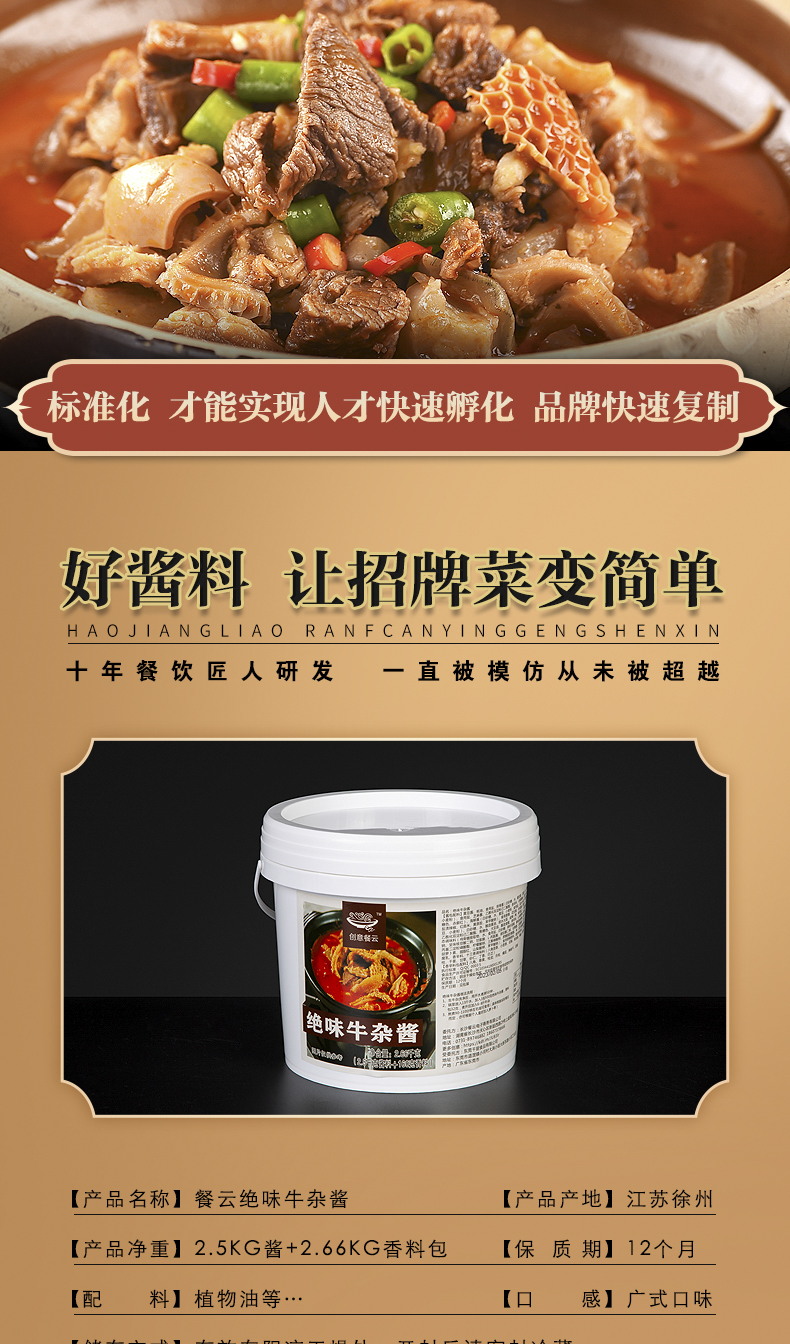 餐云绝味牛杂酱 广式牛杂煲融合创新 更适合餐厅消费群体的味蕾 餐云酱料轻松实现标准化操作(5斤装加160克香料包一桶做45份)