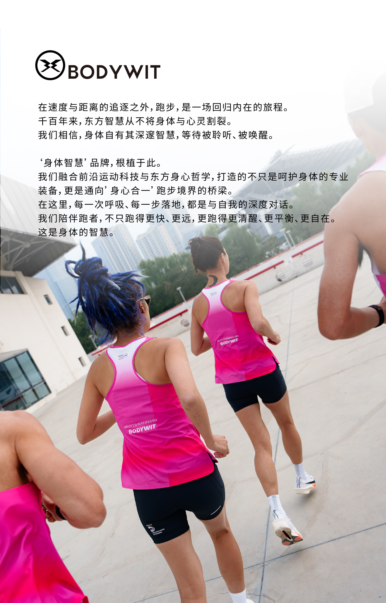 身体智慧的每一件装备,都是为了跑者在这条心灵之路上,轻松而坚定的前行。我们与每一位跑者共同探索跑步的真谛,寻找内心的宁静与力量,成为不凡的自己。身体智慧属于每位跑者。