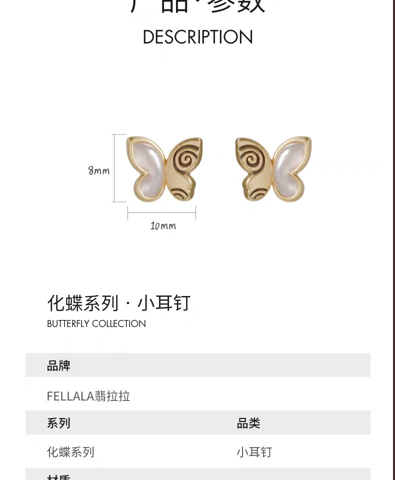 2楼「新品」Fellala/翡拉拉「化蝶」时尚设计蝶恋花耳钉素雅小耳钉货号925419109吊牌价1099现价989