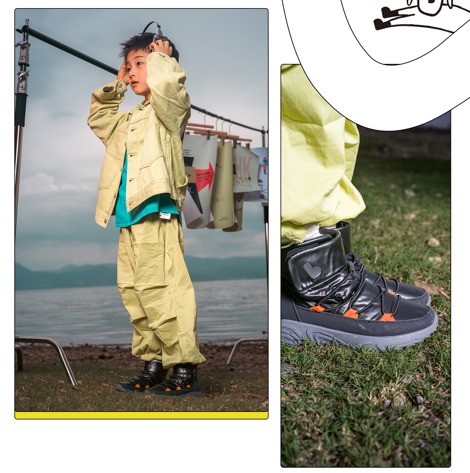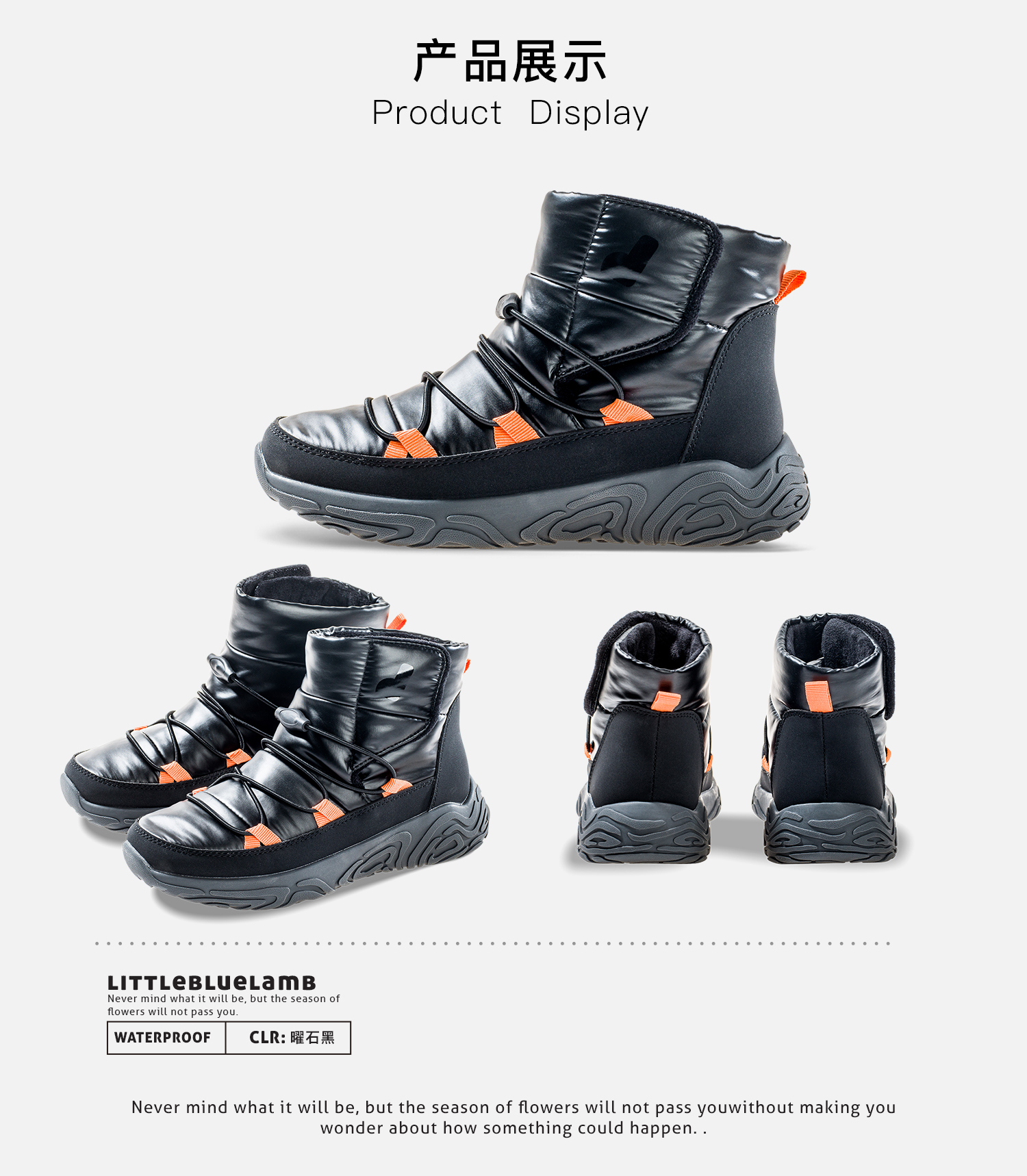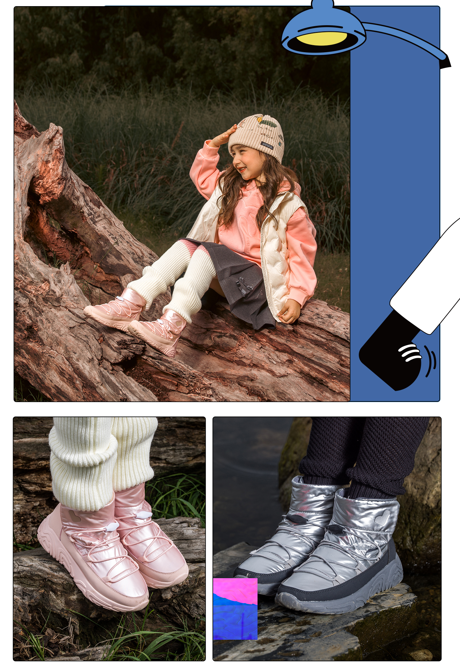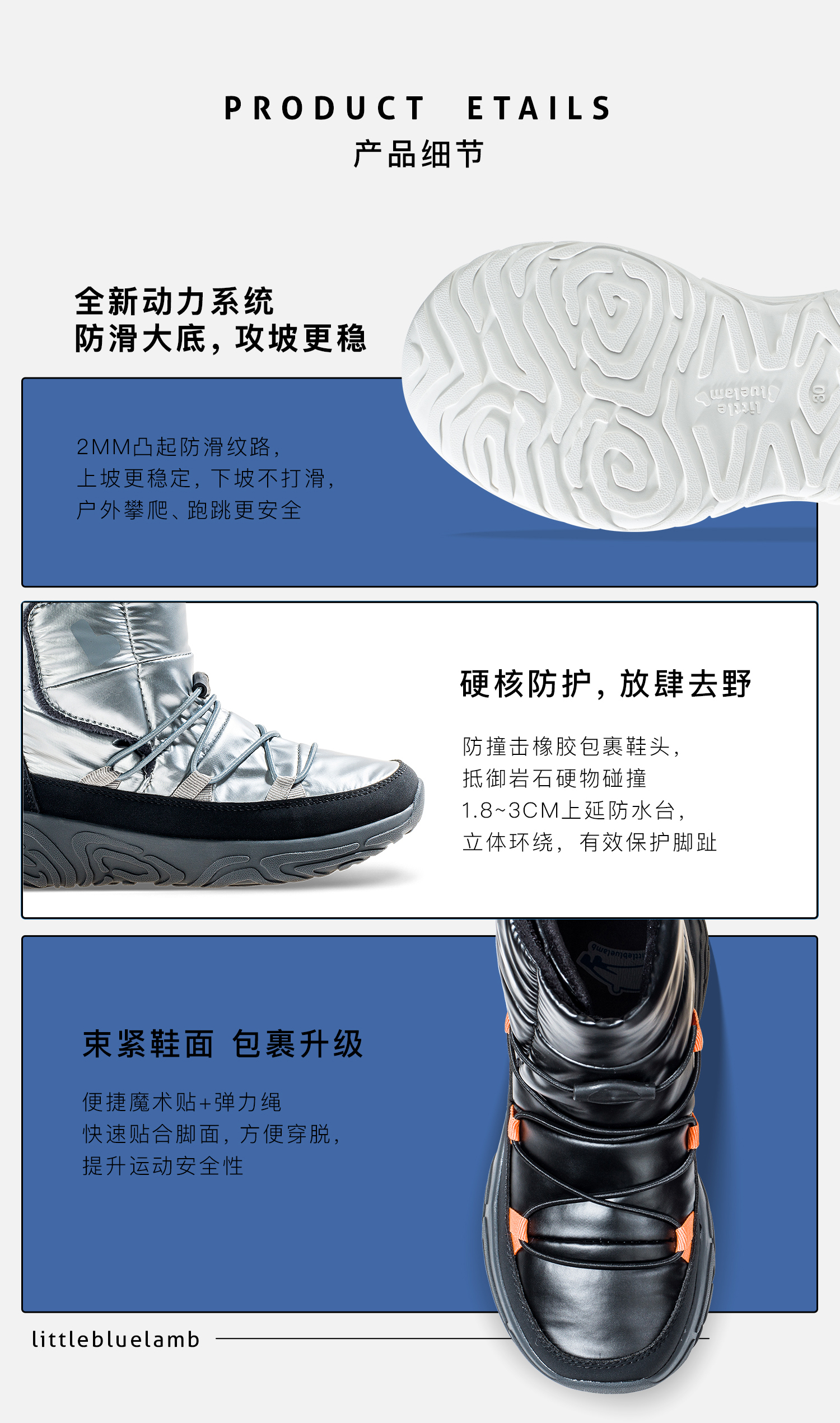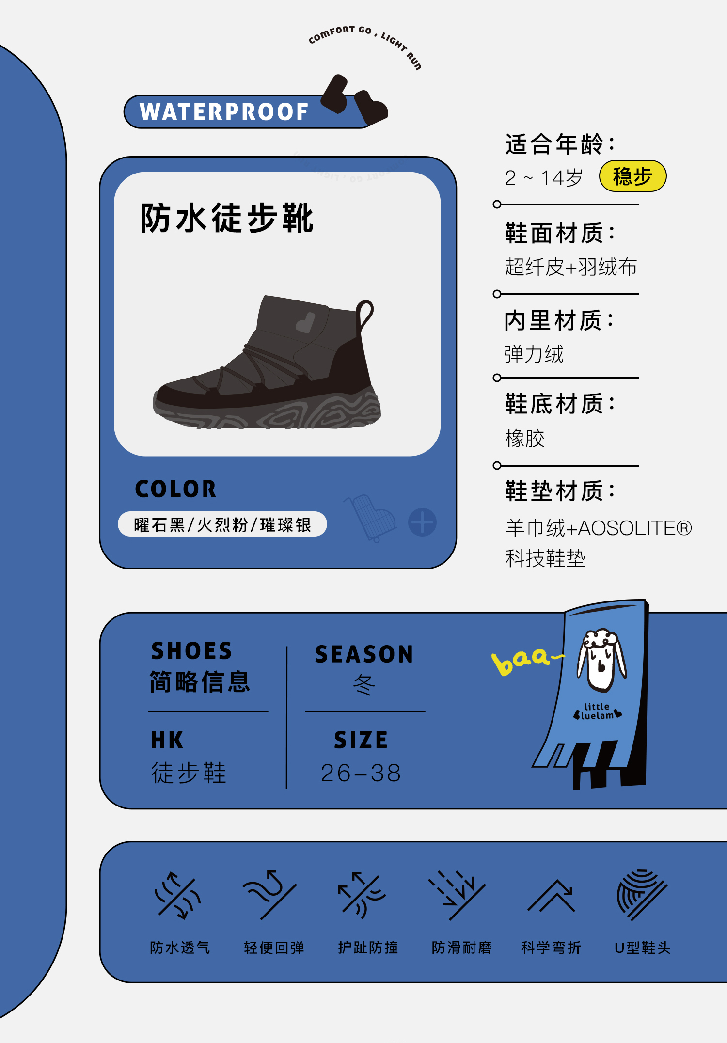 【26-38码】小蓝羊24冬新款儿童超轻棉鞋——【防水徒步靴】中大童加绒防滑防泼水布面户外保暖靴