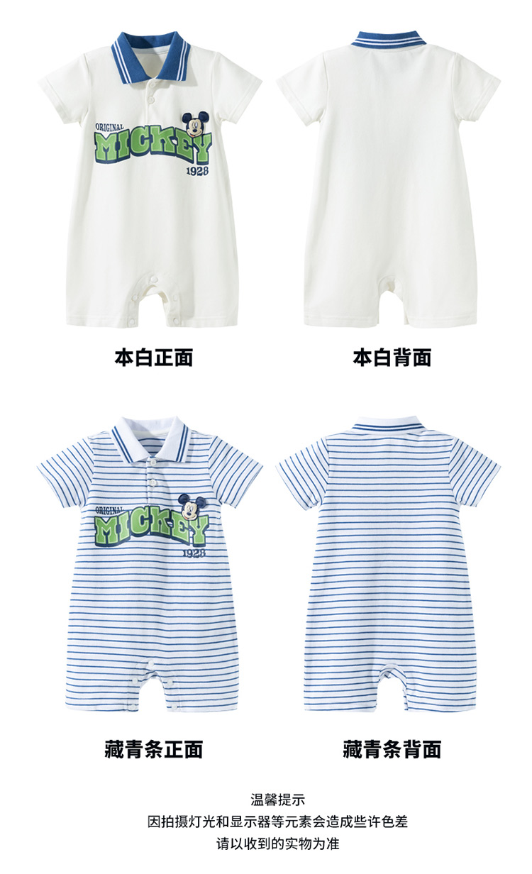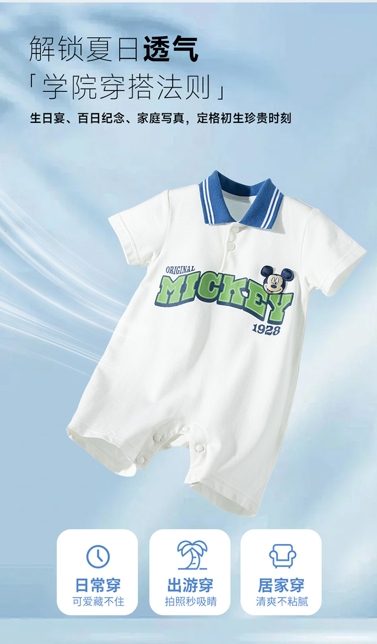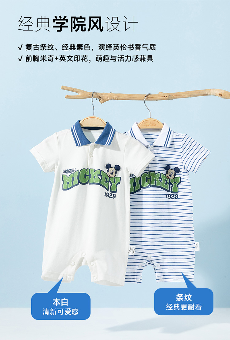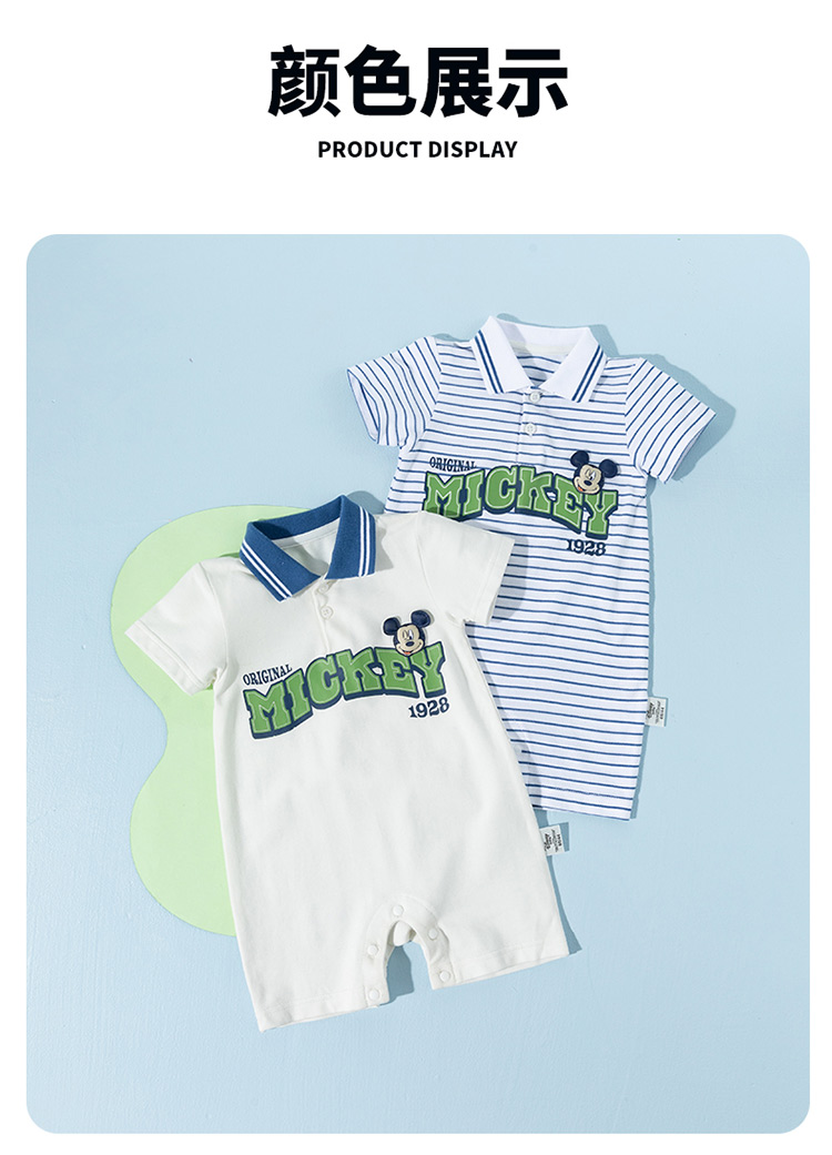 【米奇绅士风哈衣】迪士尼2025夏季新款男童亲肤短袖连体衣亲肤舒适爬服