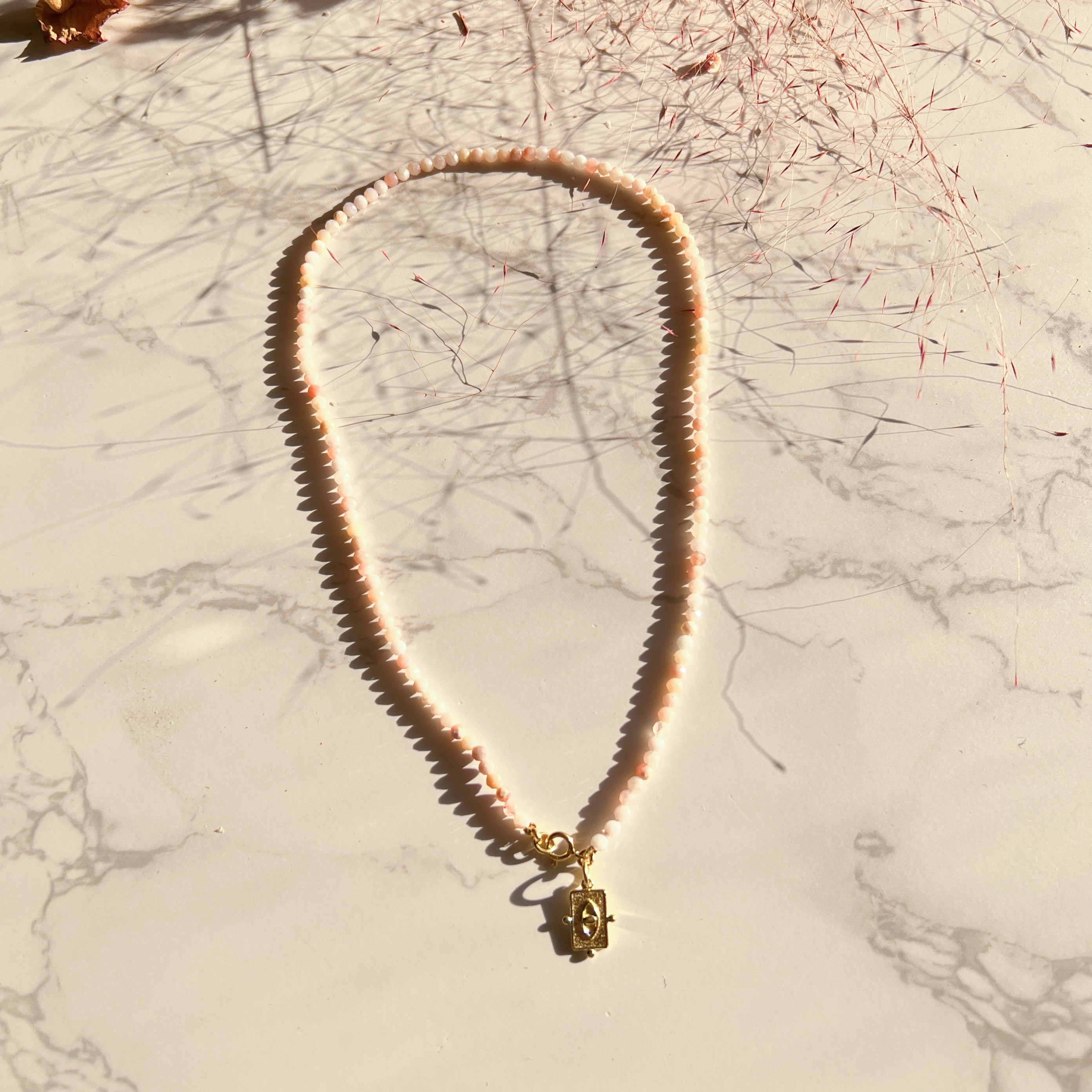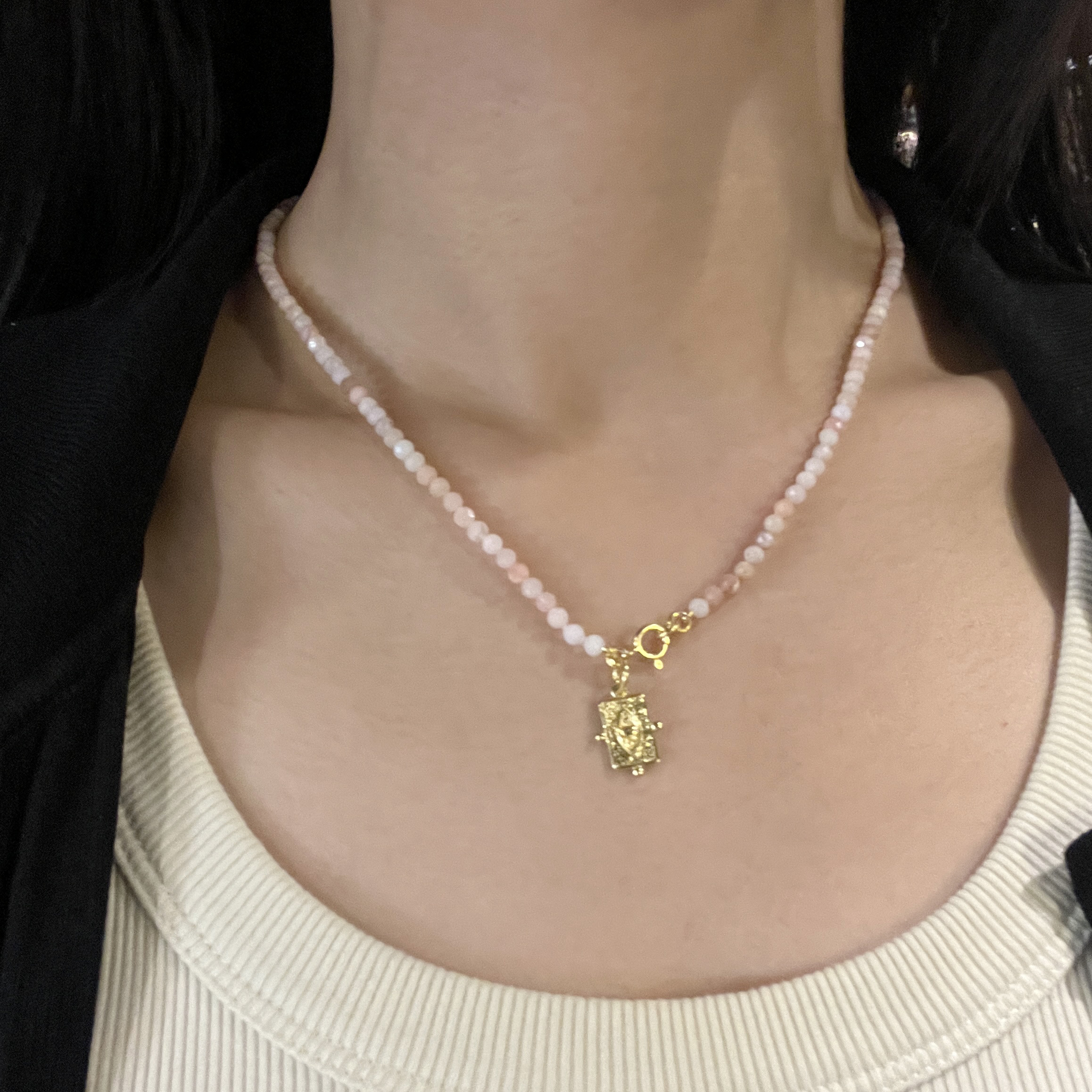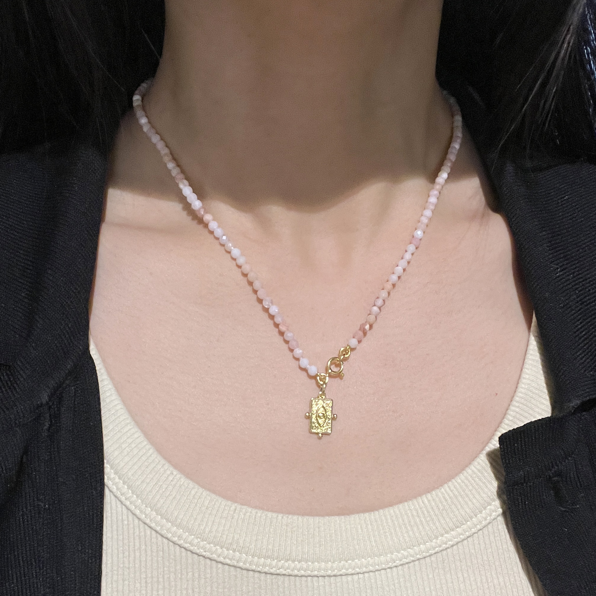 北京仓|Barbóra-Mini Eye Tag-粉色蛋白石 项链[希腊设计师]
