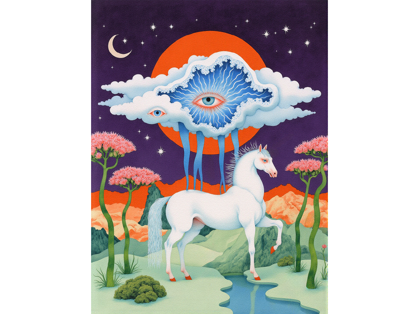 一场关于马的幻想。像孩子般任性涂抹,又像梦境的编织者,把天马行空的幻想定格为荒诞且超现实的画面。