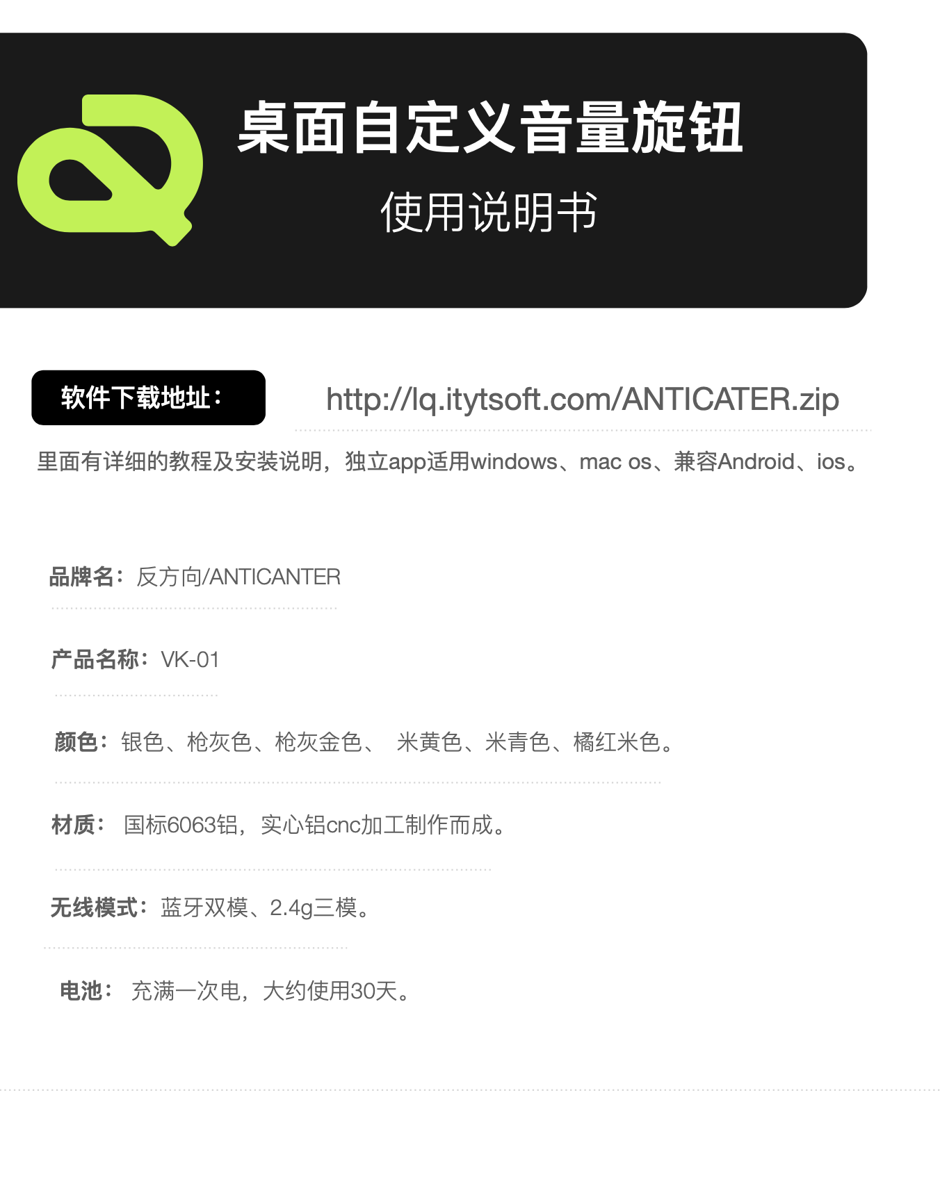 反方向ANTICATER自定义音量旋钮CNC铝合金机身自定义蓝牙小键盘