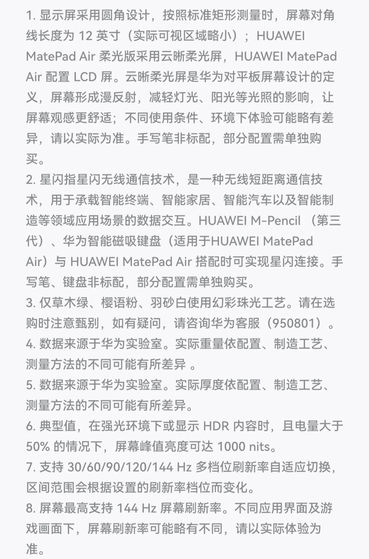 华为 MatePad Air 12英寸2024款华为平板电脑144Hz高刷全面屏2.8K办公学生学习