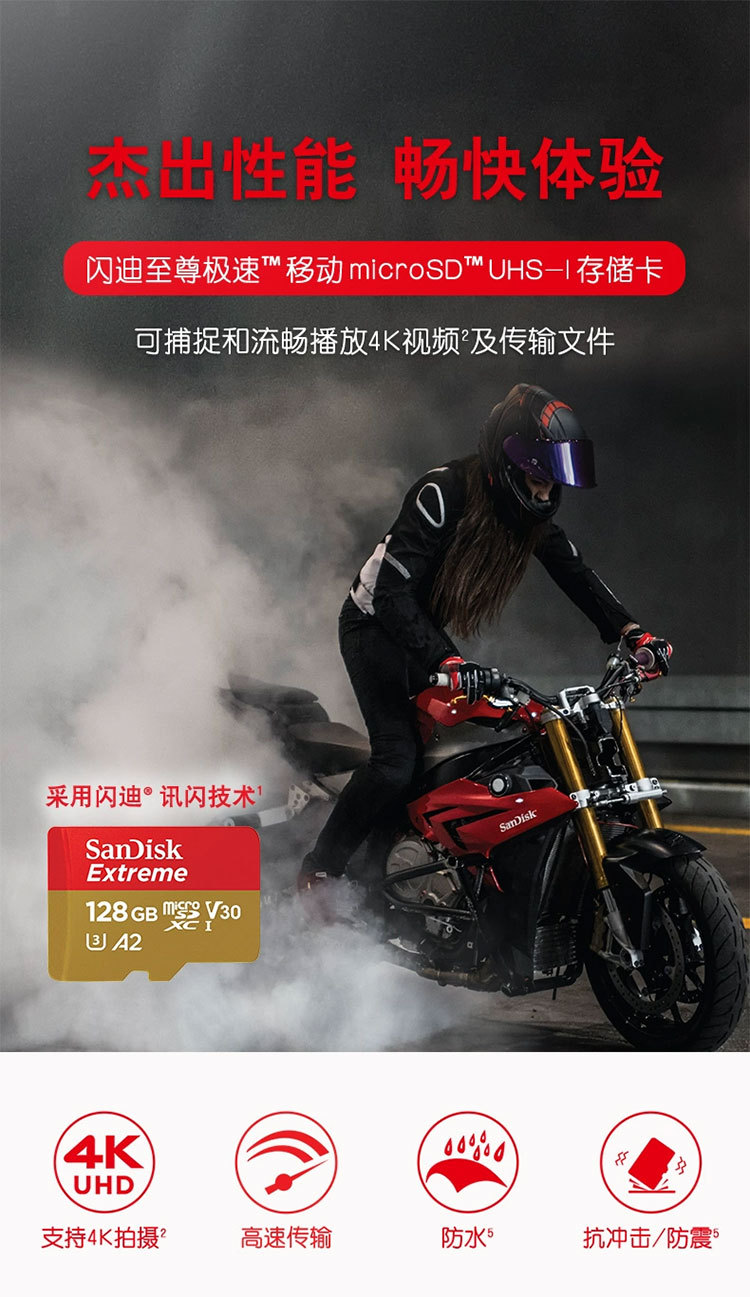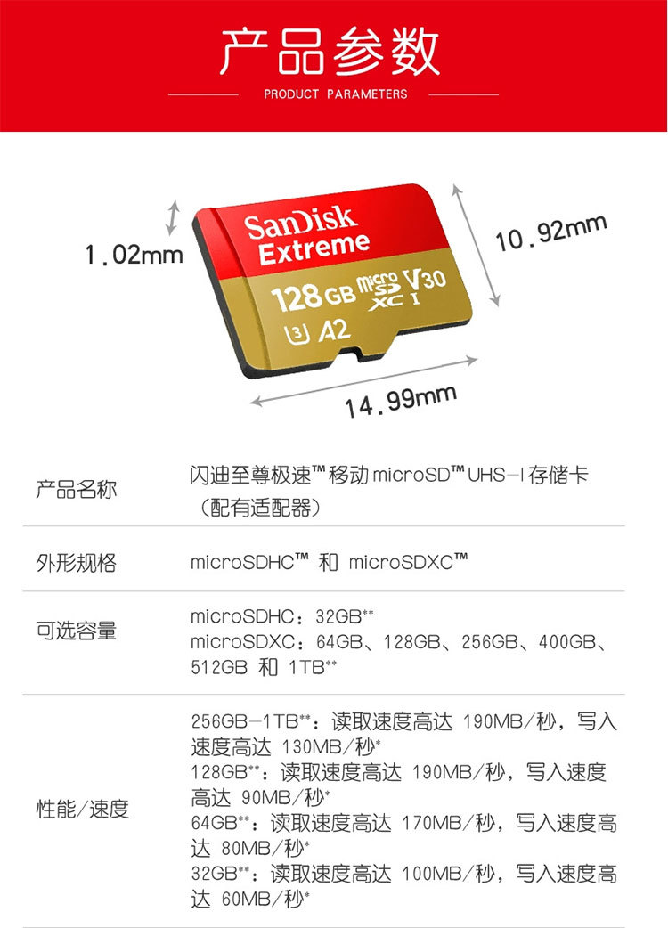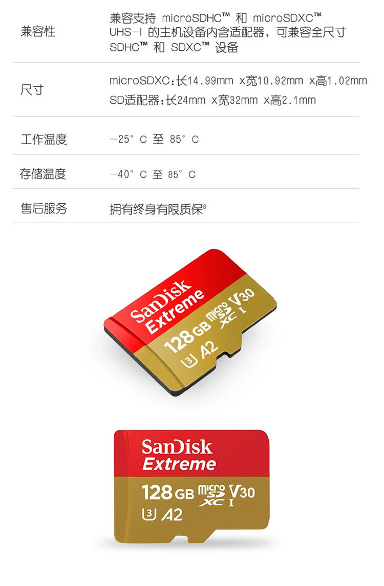 【闪迪内存卡SQXA2-金卡128GB-1个】TF卡高速128G手机SD卡行车记录仪存储卡