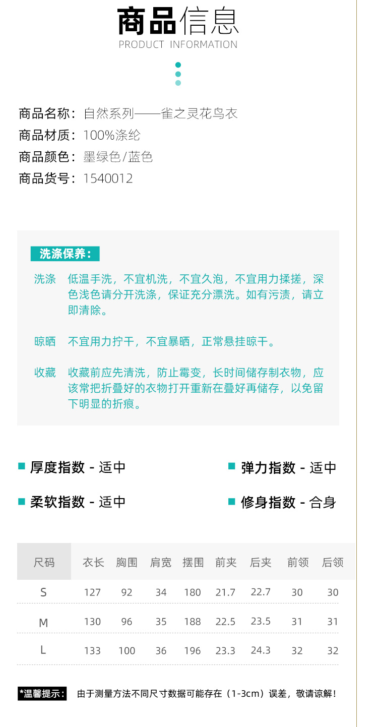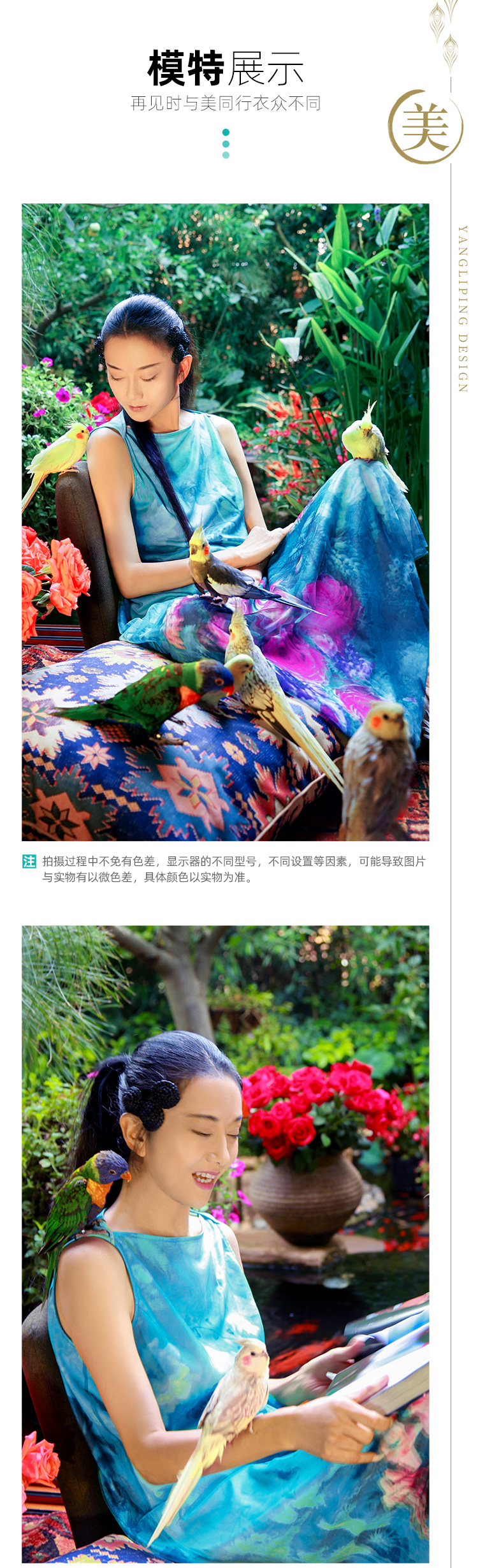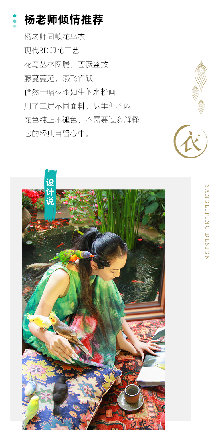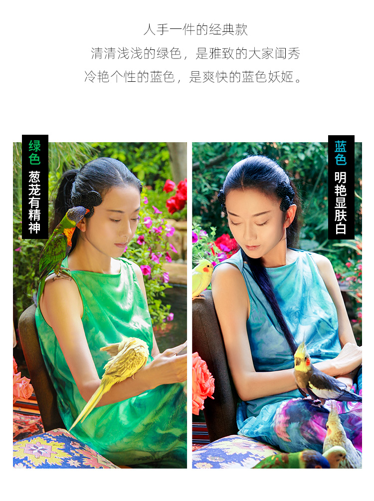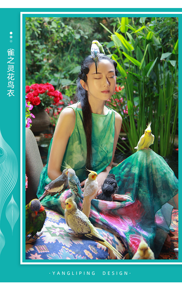 雀之灵花鸟连衣裙 | 杨丽萍老师同款 | 绿色清新 浅蓝色显白 | 现货加急发