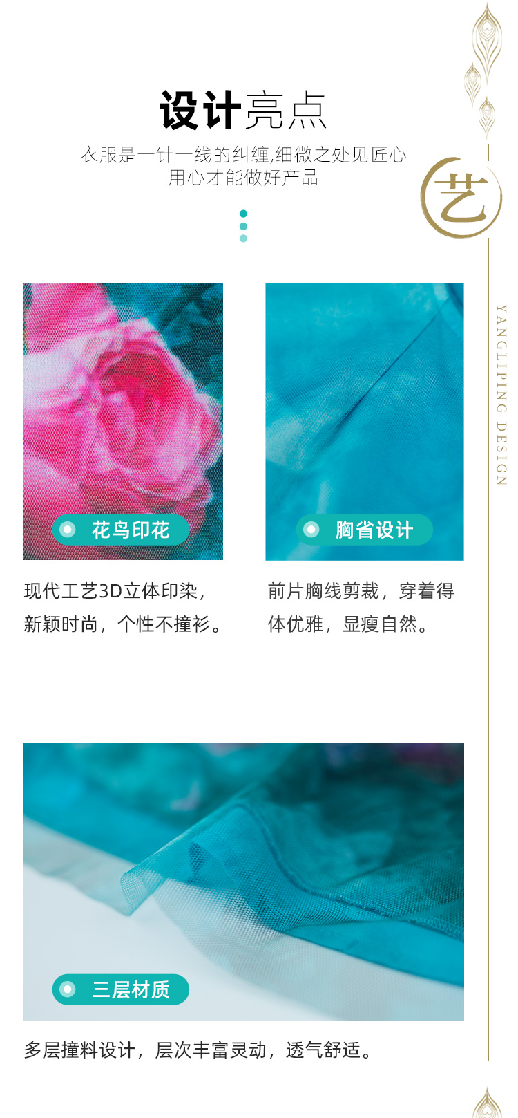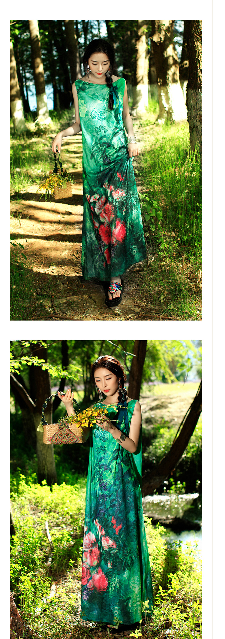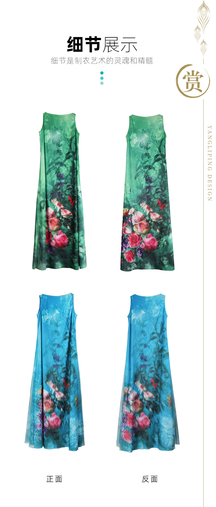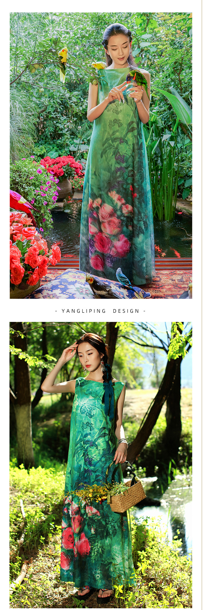雀之灵花鸟连衣裙 | 杨丽萍老师同款 | 绿色清新 浅蓝色显白 | 现货加急发