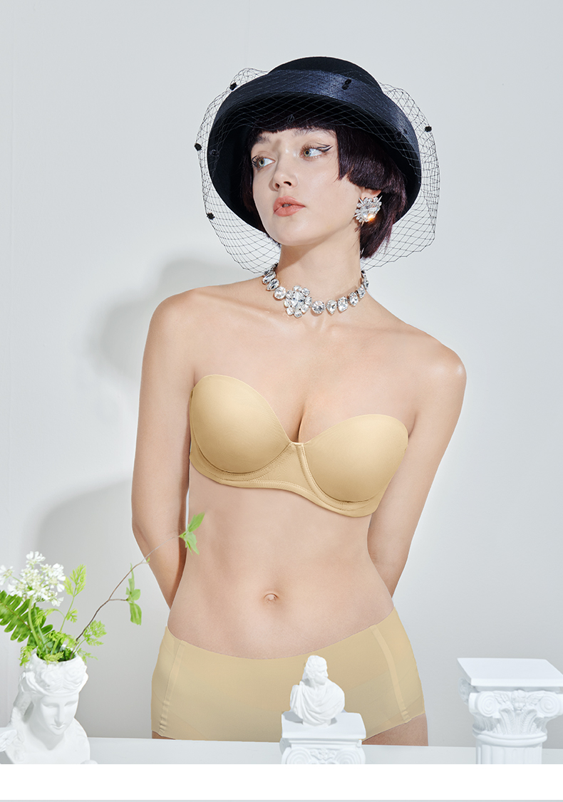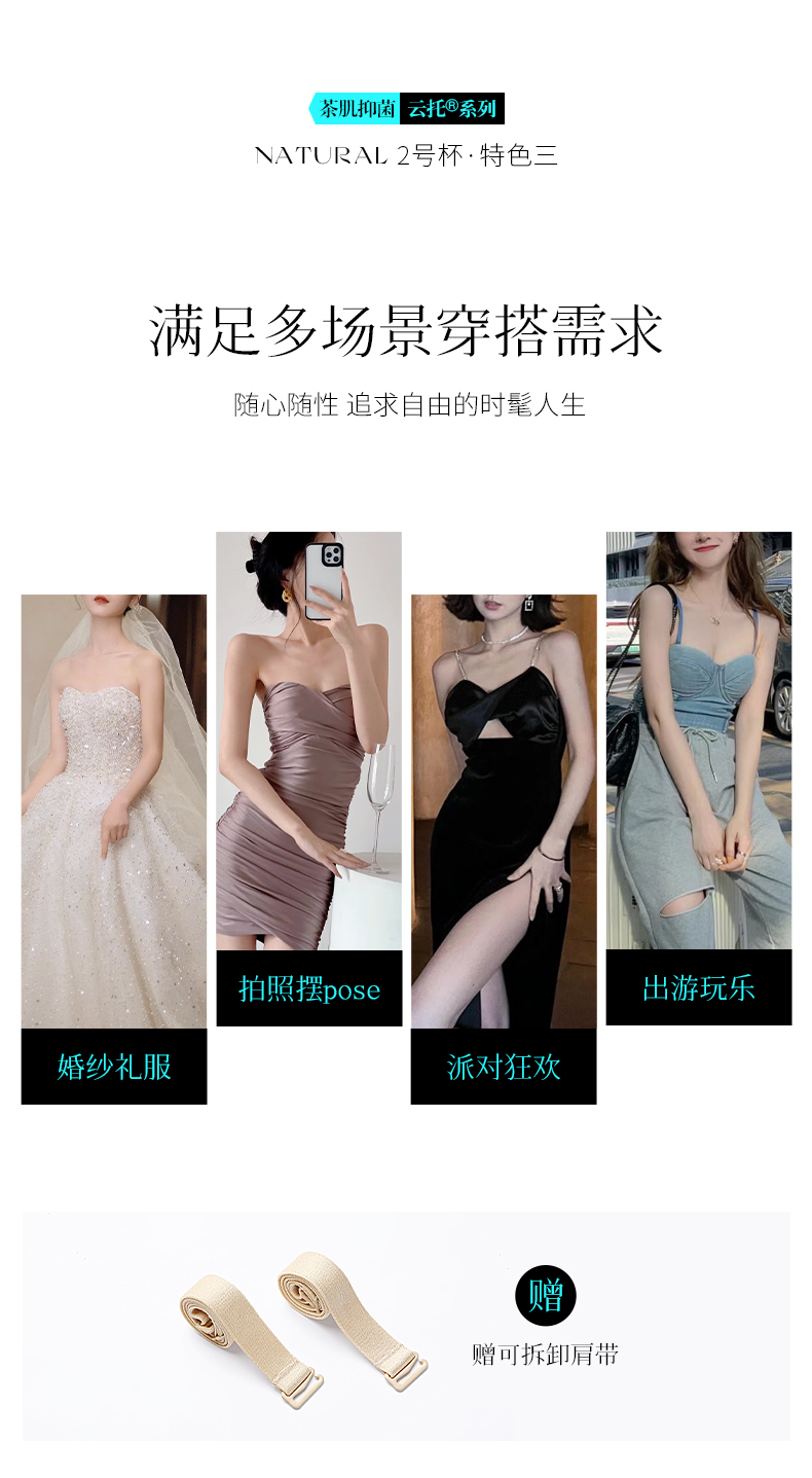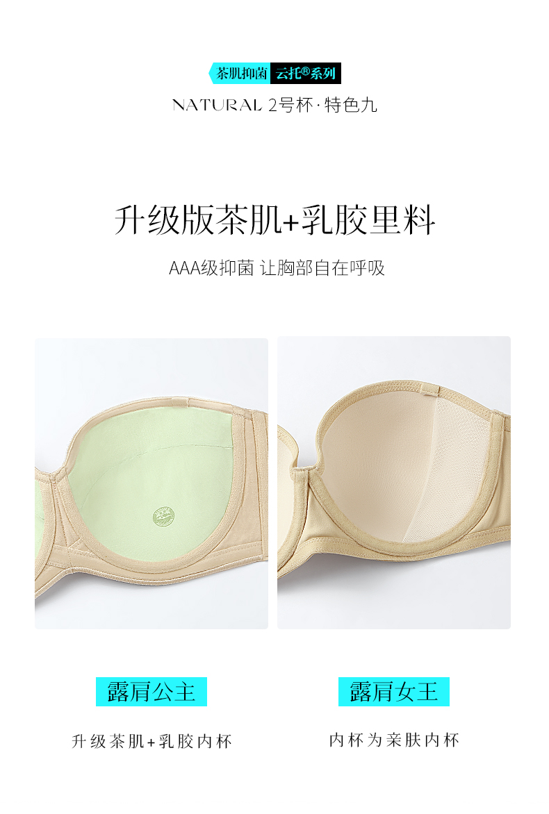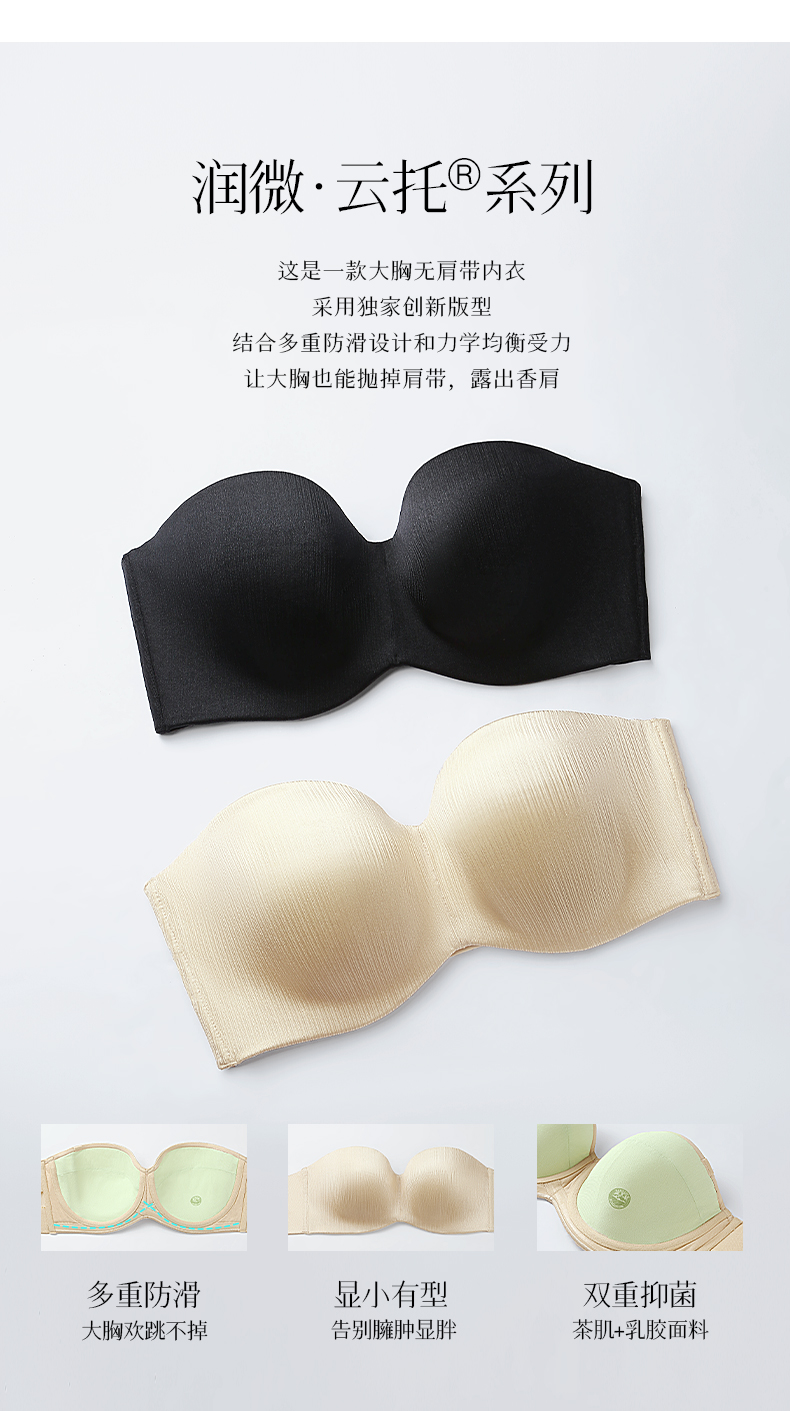 D3-【B-E杯】【科学三角平衡法】【硅胶防滑条】【内杯增加软骨收拢胸部】【赠可拆卸肩带】【流光轻奢杯面】润微内衣女乳胶茶肌抑菌硅胶防滑抹胸防下垂半罩杯礼服文胸 露肩公主【大胸-半杯】