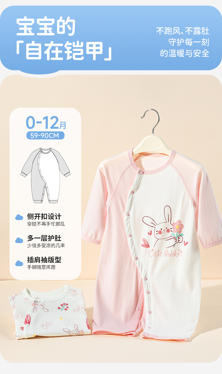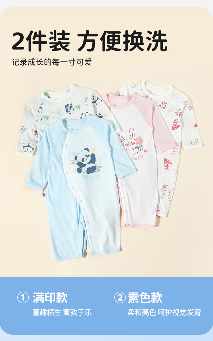 贝贝怡【2件装7A抗菌哈衣】春秋新款男女宝宝侧开连体衣满月抱衣爬服ZB3EL012