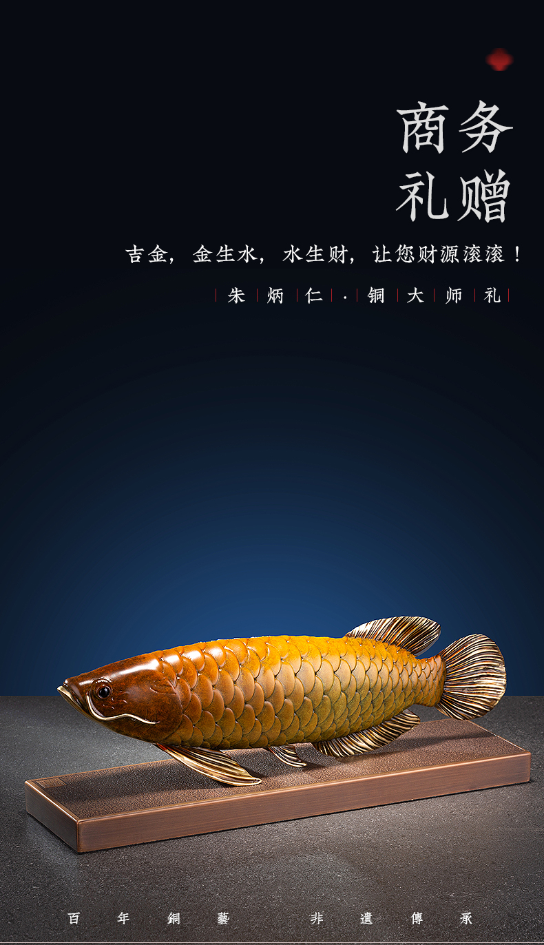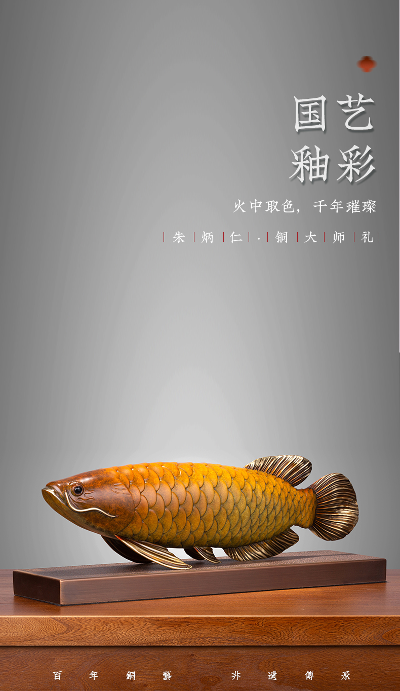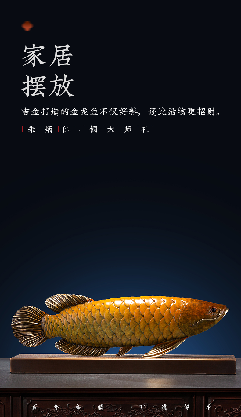 【6F】朱炳仁铜 金龙鱼客厅办公桌中式艺术品创意家居鱼装饰品铜雕礼品