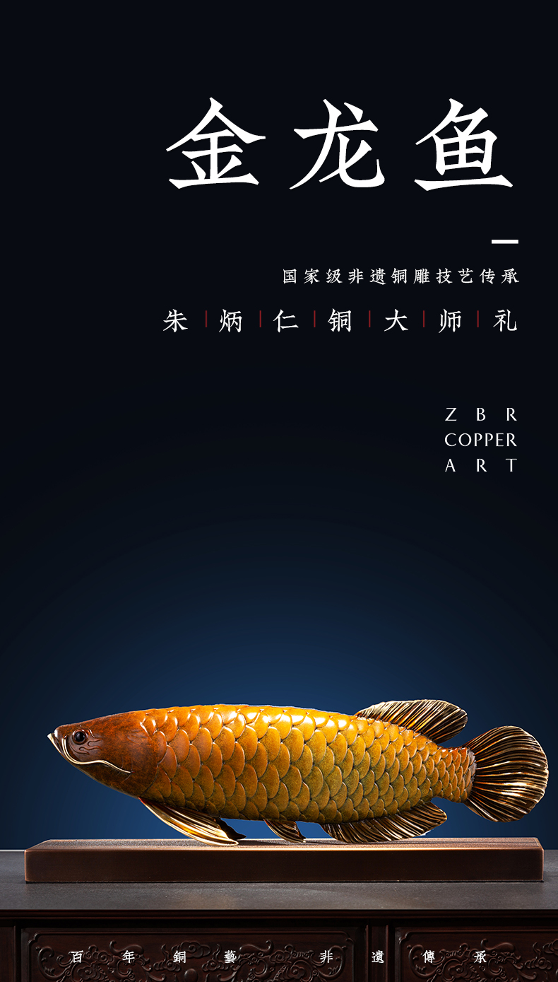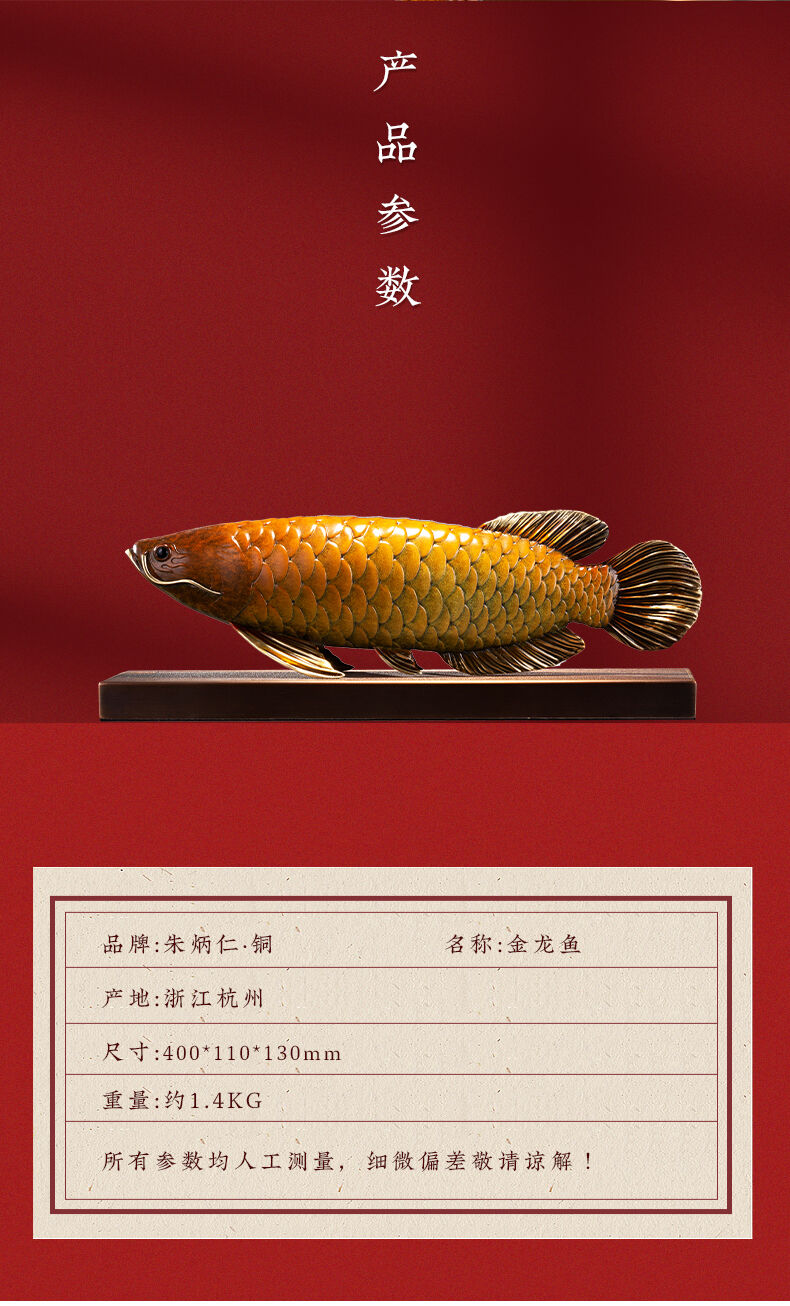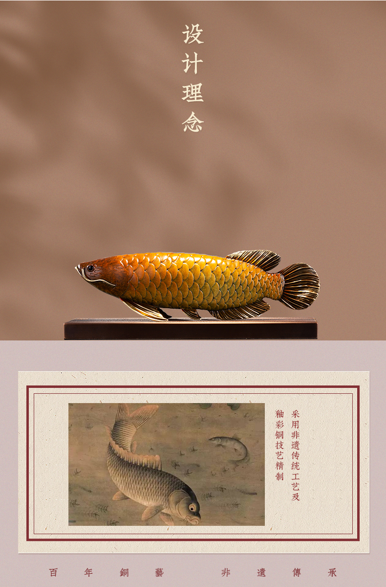 【6F】朱炳仁铜 金龙鱼客厅办公桌中式艺术品创意家居鱼装饰品铜雕礼品