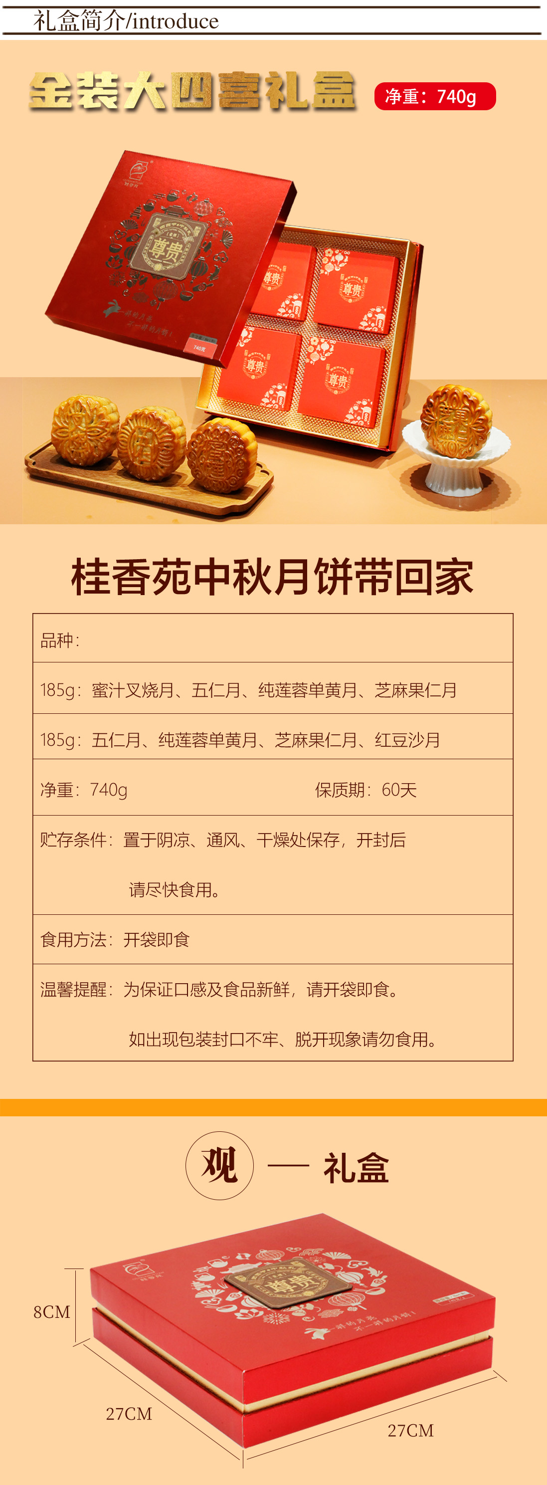 桂香苑 金装大四喜礼盒中秋节月饼礼盒 全国邮寄 多口味月饼