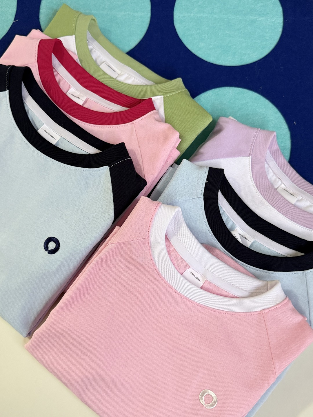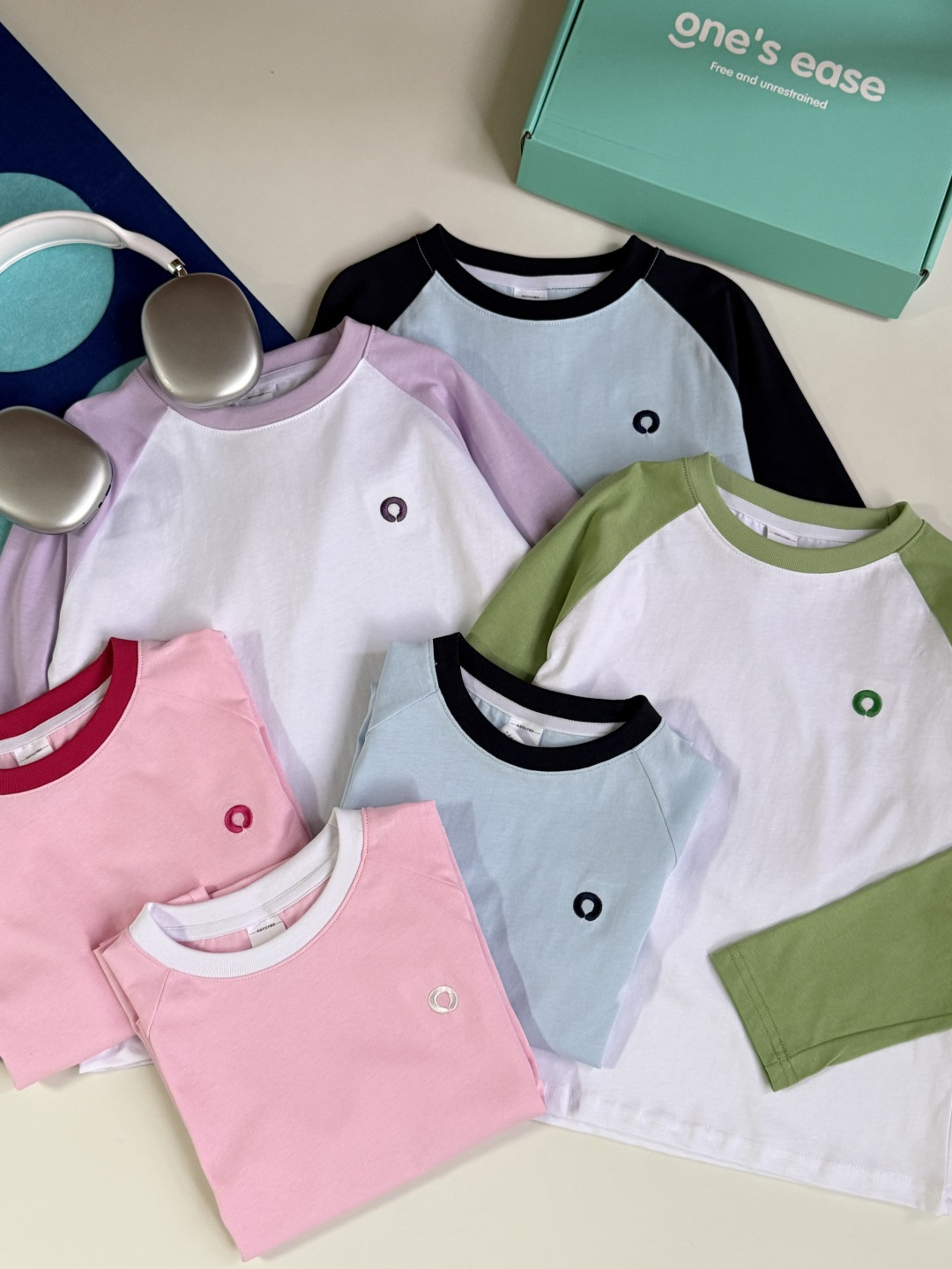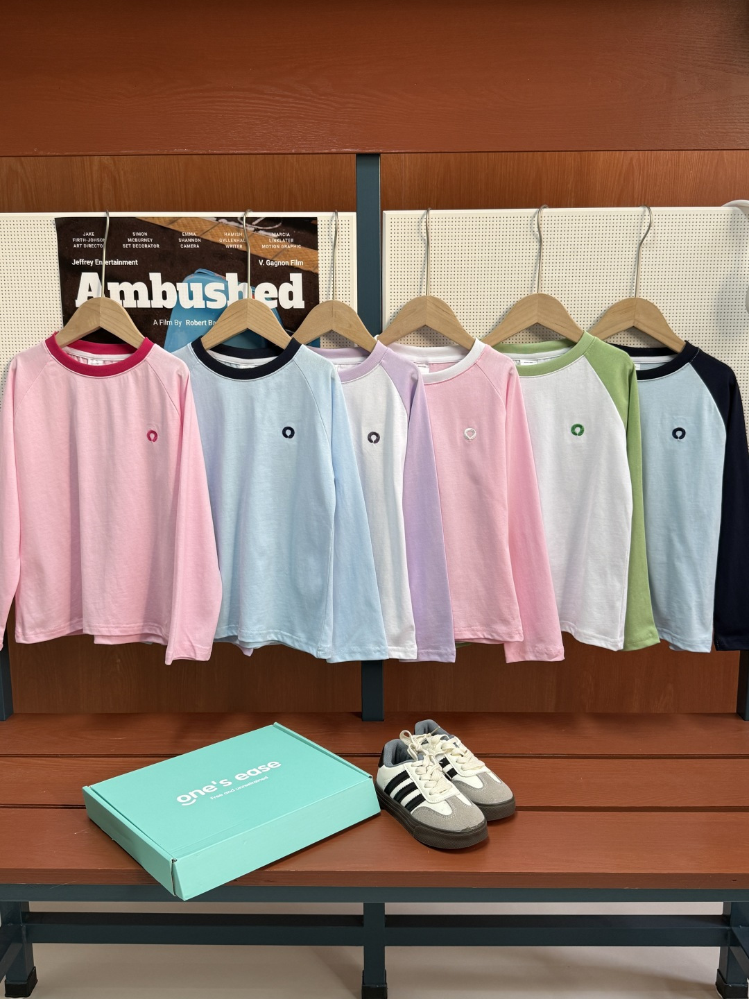 儿童春款三件套!2026条纹插肩圆领衫撞色拼接长袖插肩打底三件套装!