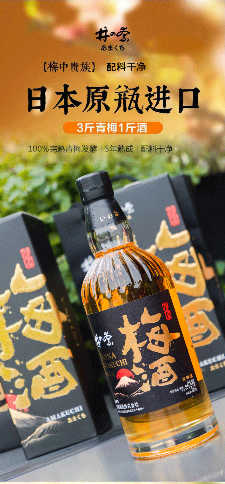 “日本大分县150年名酒造”井奈 青梅酒 口感醇柔 果味浓郁 日本原装进口 720ml/瓶