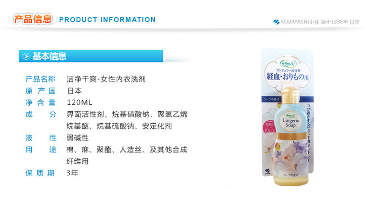 日本原装小林制药女性生理内衣内裤清洗剂 消菌去味去血渍 120ml