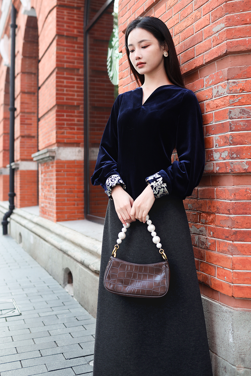根据刺绣图案特别改良的袖克夫,是整件的核心,微灯笼袖,显瘦遮肉,微胖姐妹也可轻松驾驭。