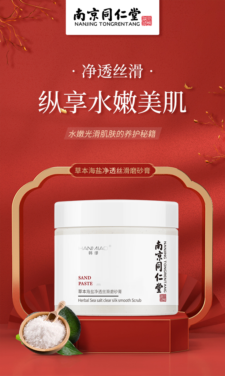 【买1送1】同仁堂海盐美白磨砂膏去鸡皮肤去角质疙瘩毛囊去除身体嫩白全身