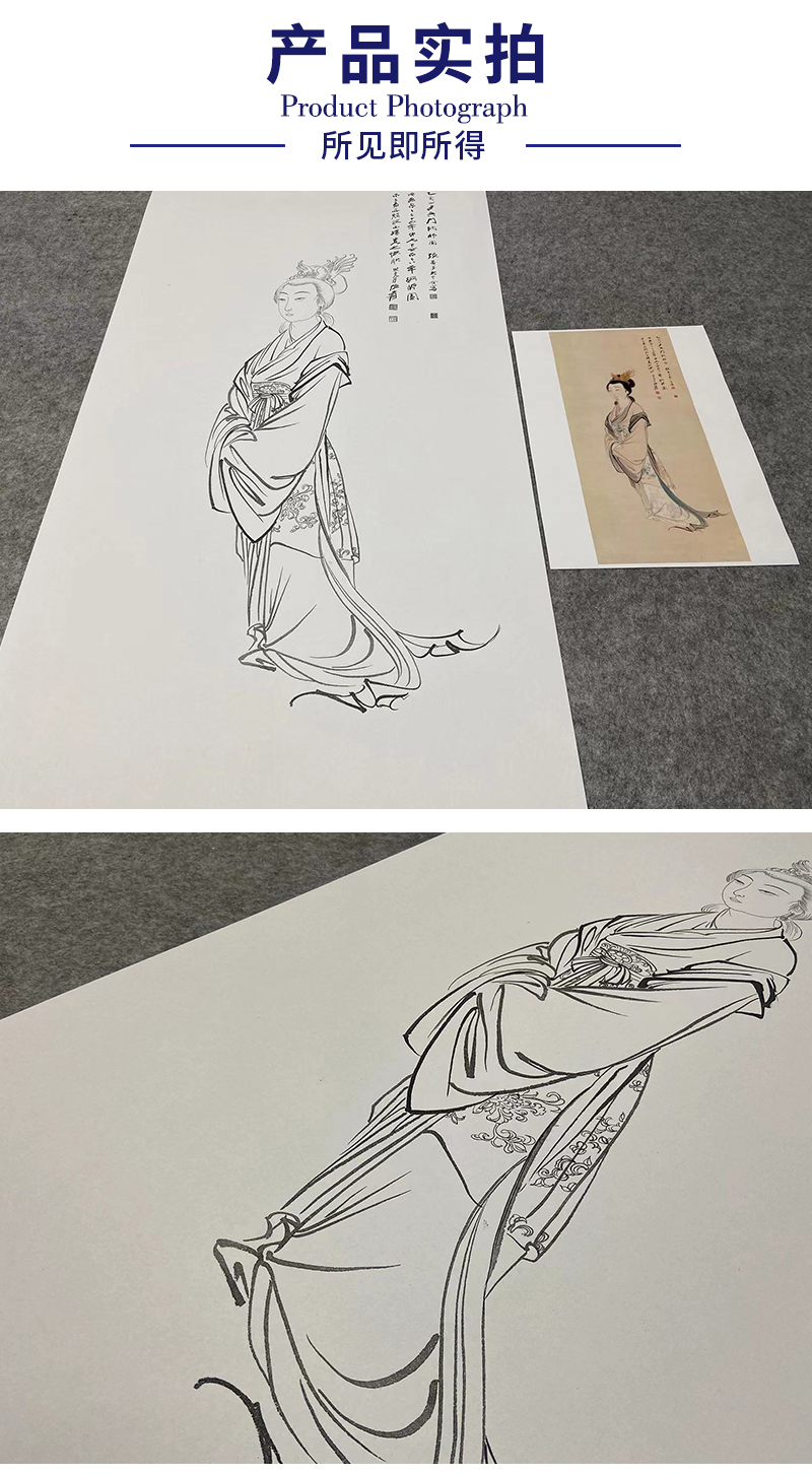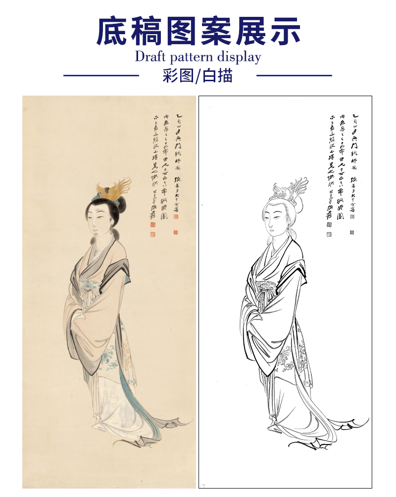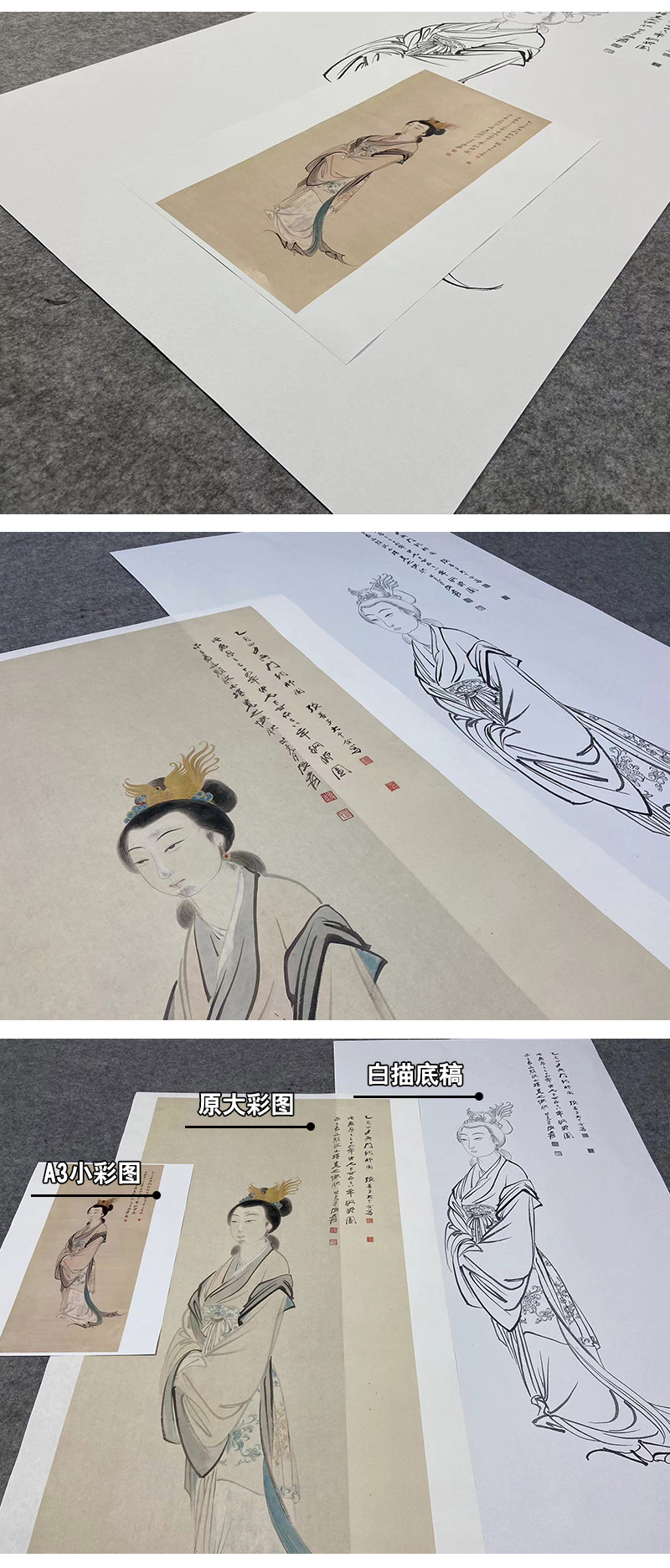 【大彩图】张大千工笔传统仕女人物白描底稿临摹勾线高清打印稿QD59