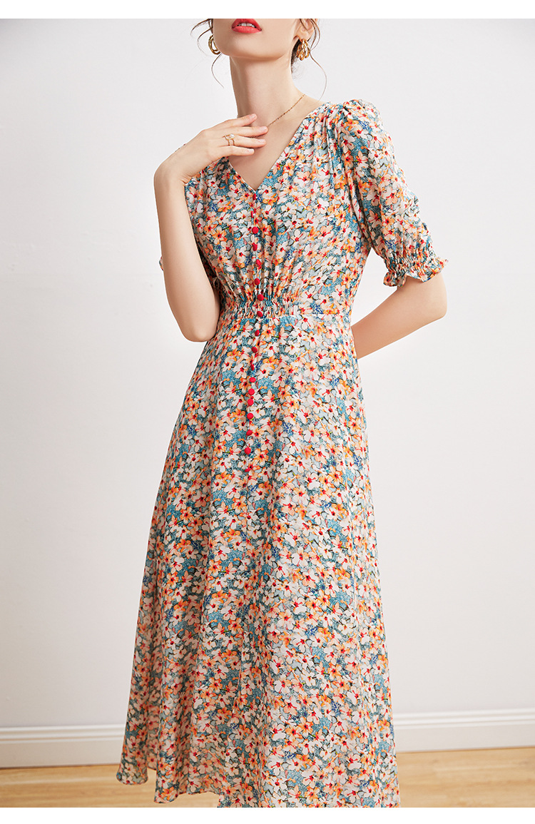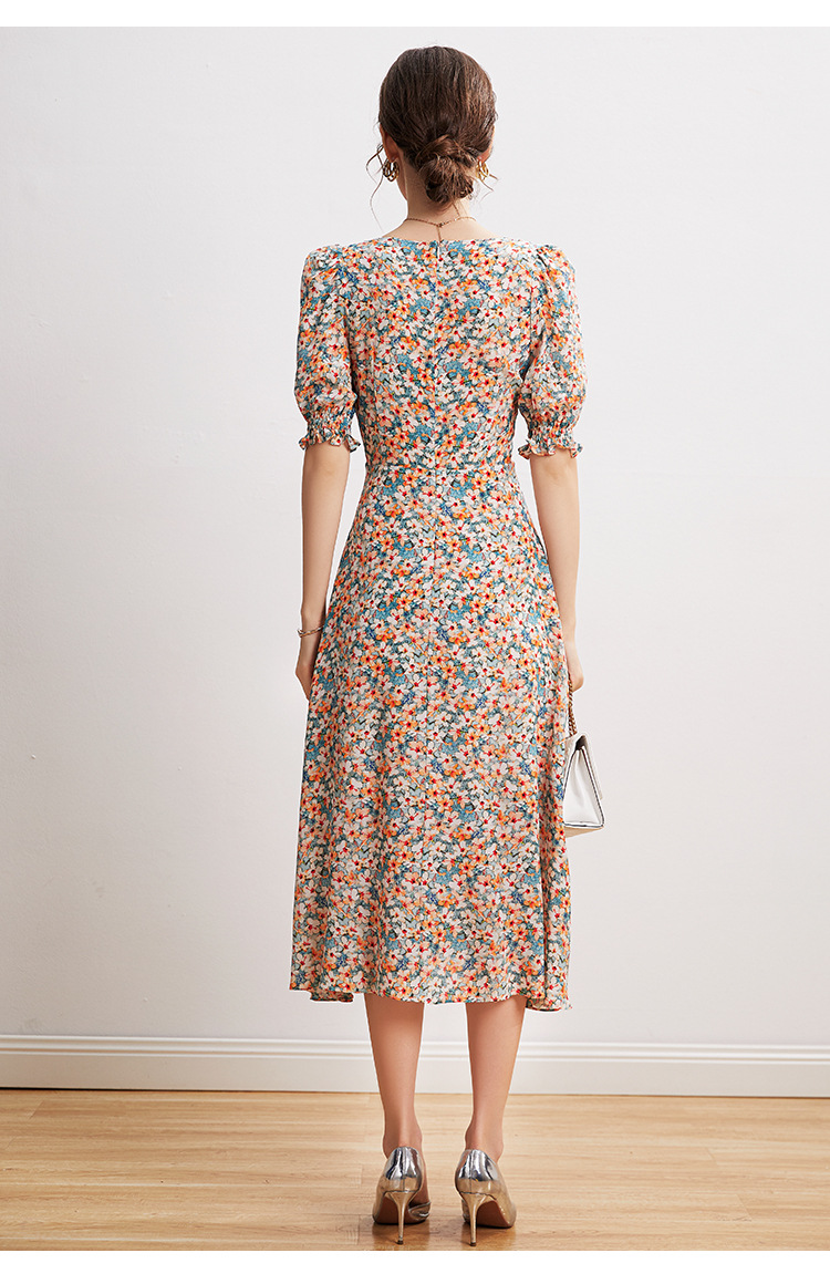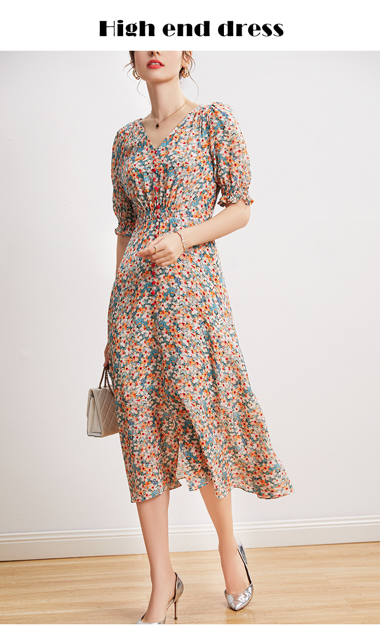 「高货kbnq」全新升级【铂金会员468/天猫629/差价161】(03140)洛诗琳法式V领真丝碎花裙2025夏季收腰开叉优雅印花裙