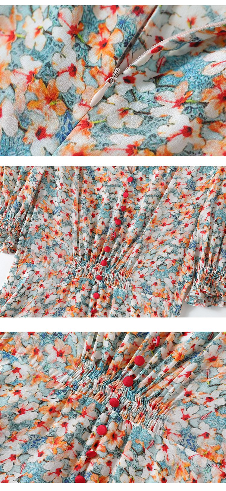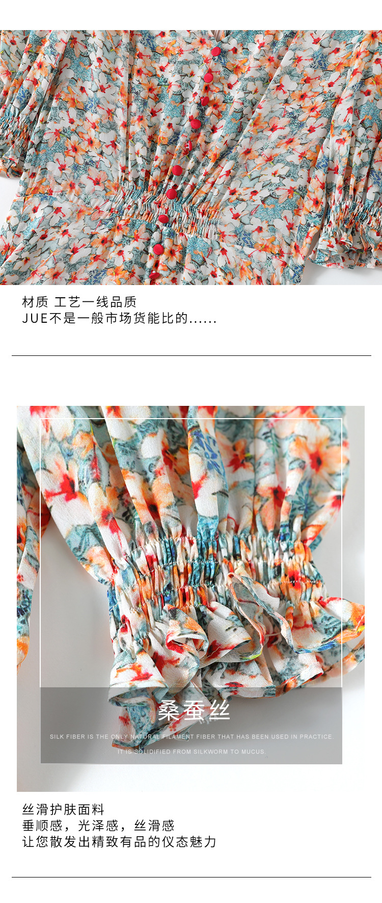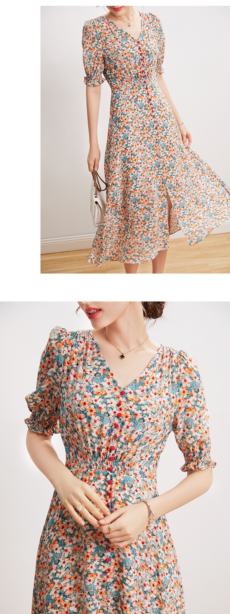 「高货kbnq」全新升级【铂金会员468/天猫629/差价161】(03140)洛诗琳法式V领真丝碎花裙2025夏季收腰开叉优雅印花裙