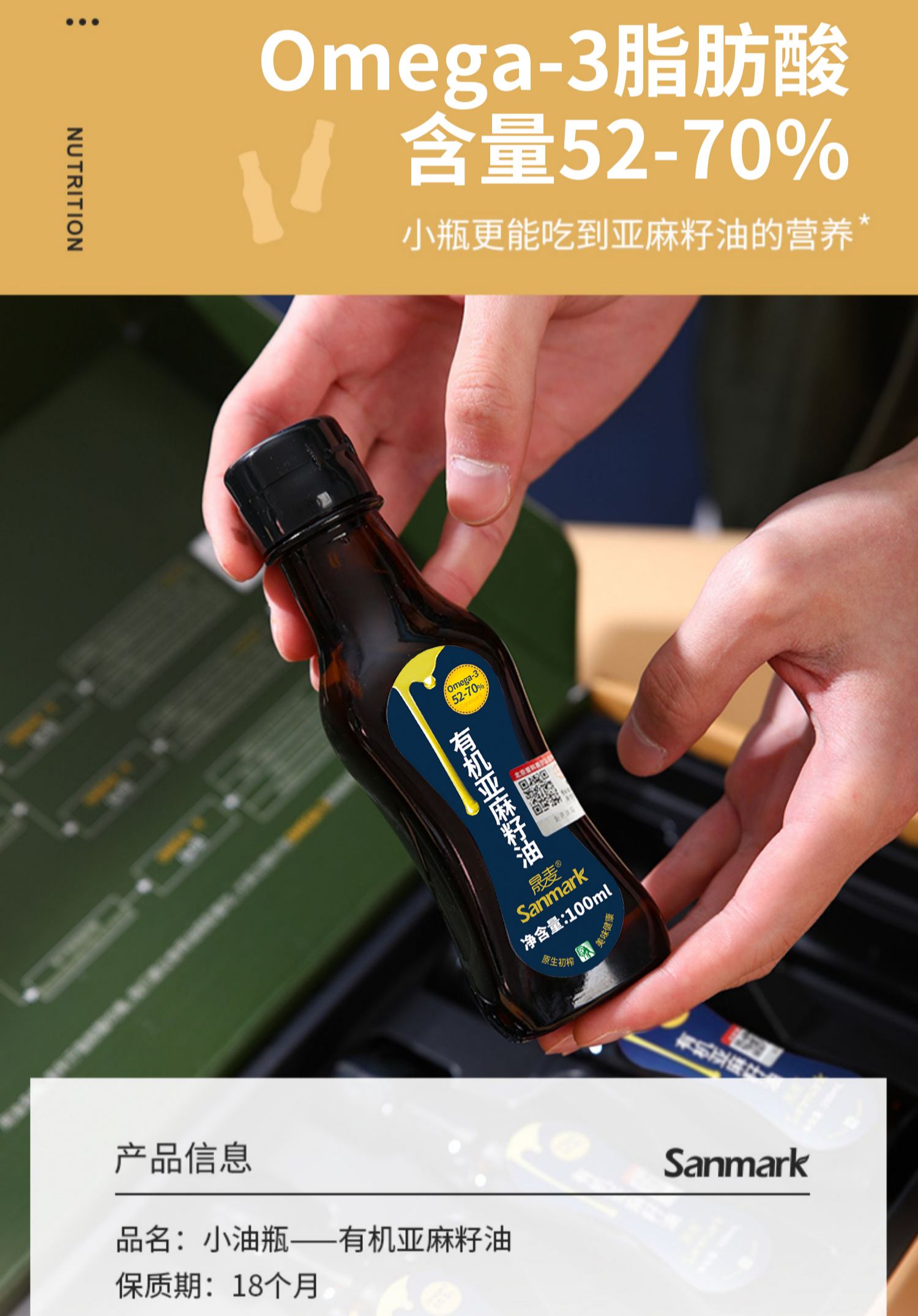 【健康必备】晟麦有机亚麻籽油5瓶小套装 5*100ml 低温压榨 富含亚麻酸