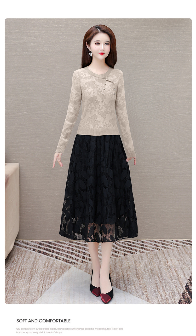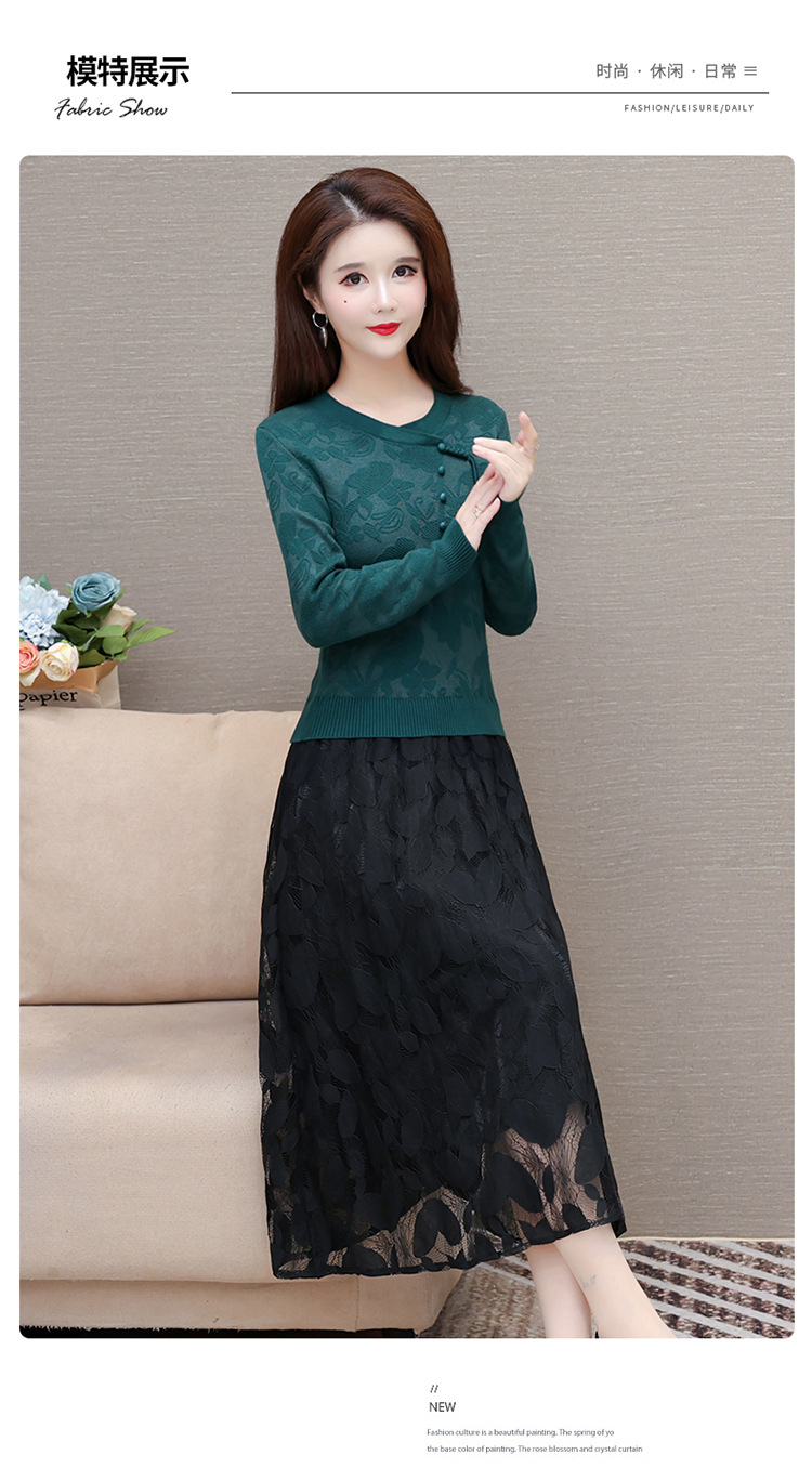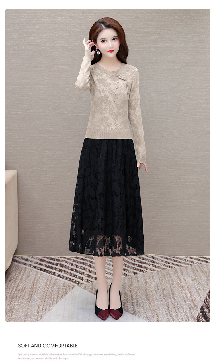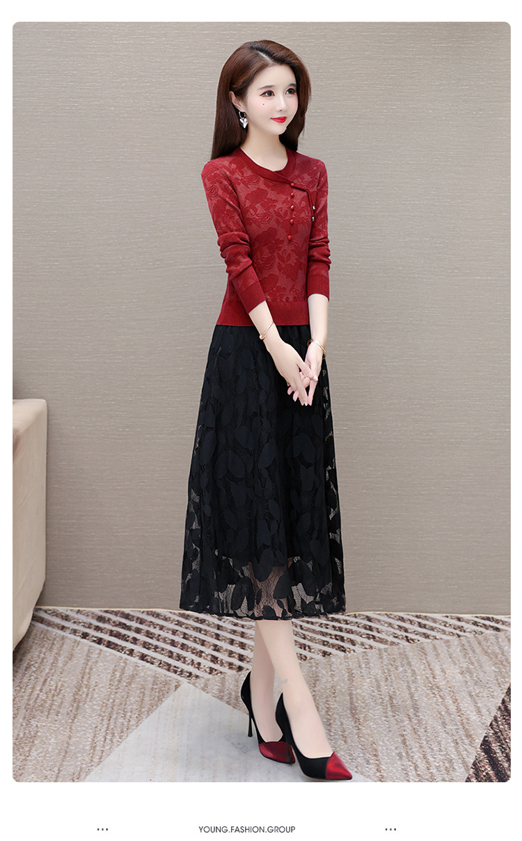 QYMXY-24LXB801-Y针织连衣裙女2024年新款毛衣裙拼结时尚蕾丝网纱裙长袖A字裙 商品图3