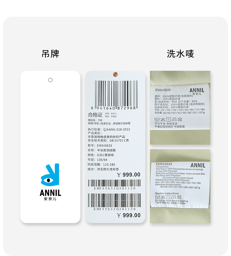 男女童中长款羽绒服冬季新款安奈儿童装EM545633