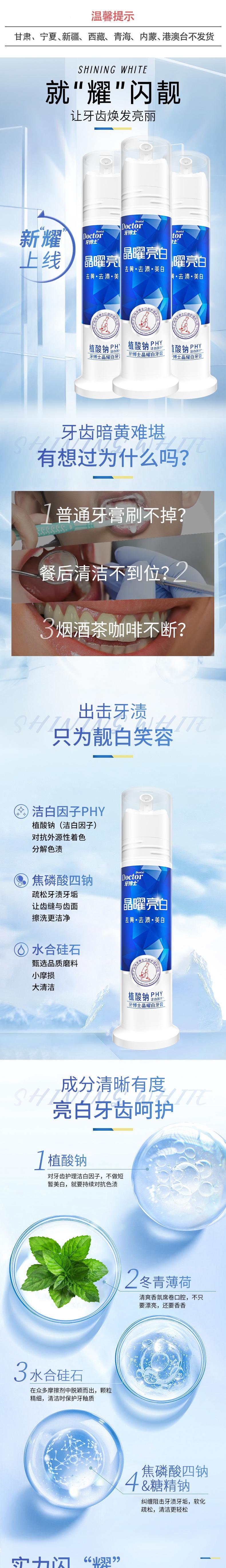 (广西石化秒杀)牙博士 晶曜亮白牙膏压泵装130g*3 6924431416664