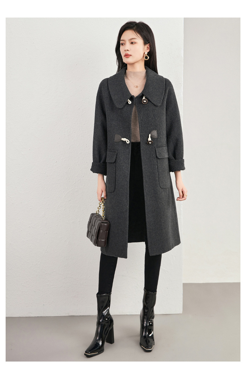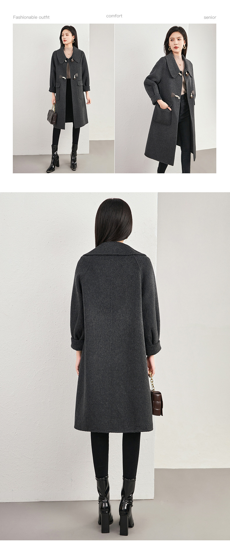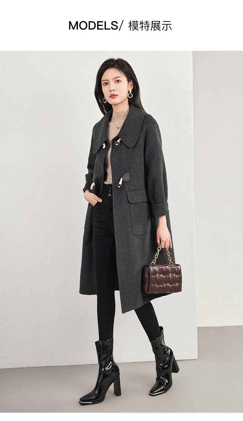 秋冬新款,牛角扣羊毛大衣长款保暖美拉德外套女装WLZD-23231106