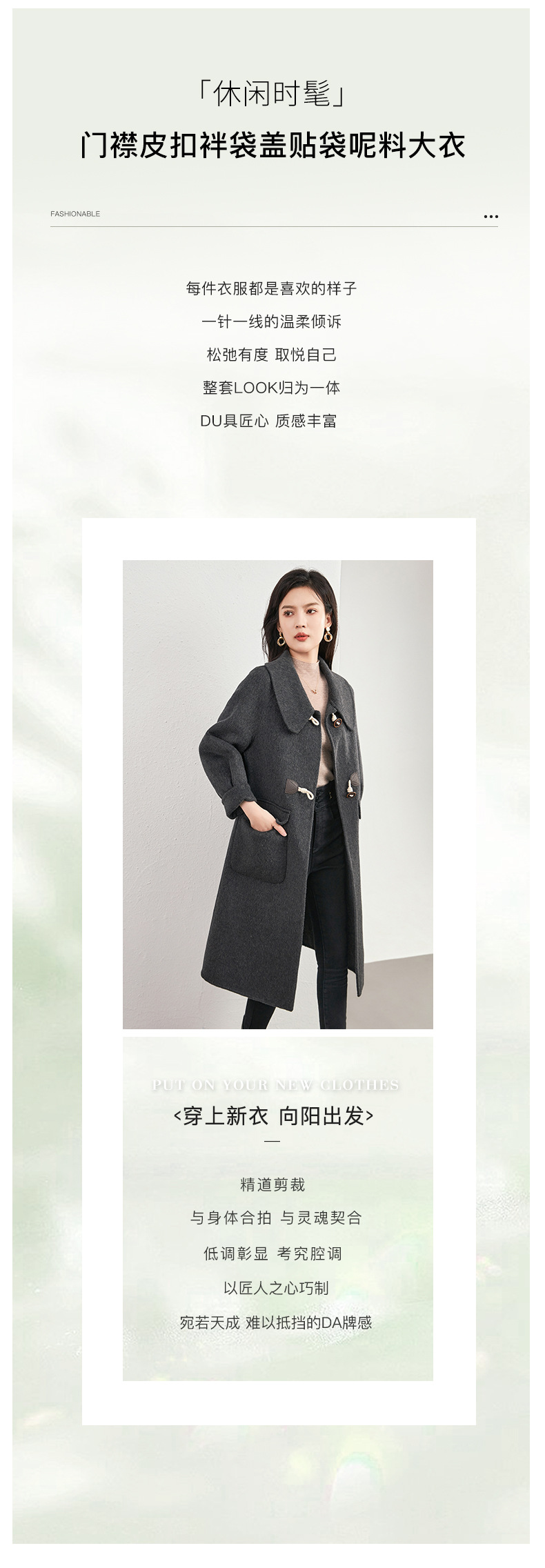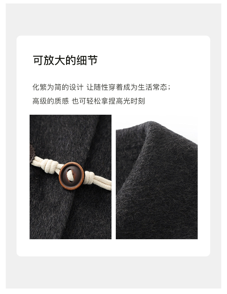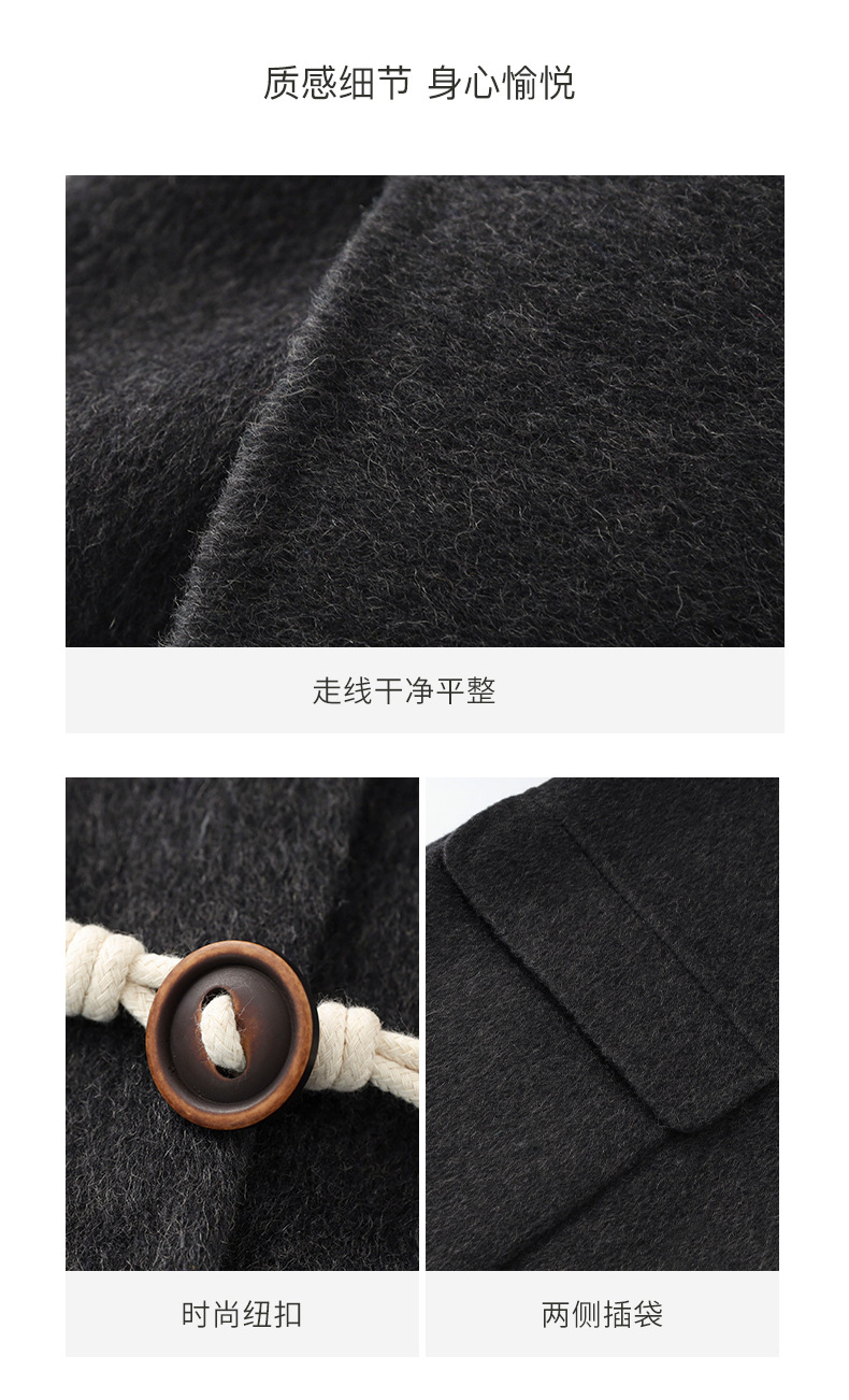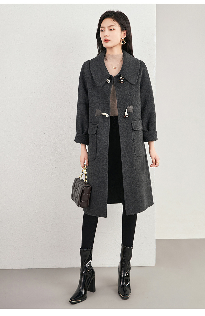 秋冬新款,牛角扣羊毛大衣长款保暖美拉德外套女装WLZD-23231106