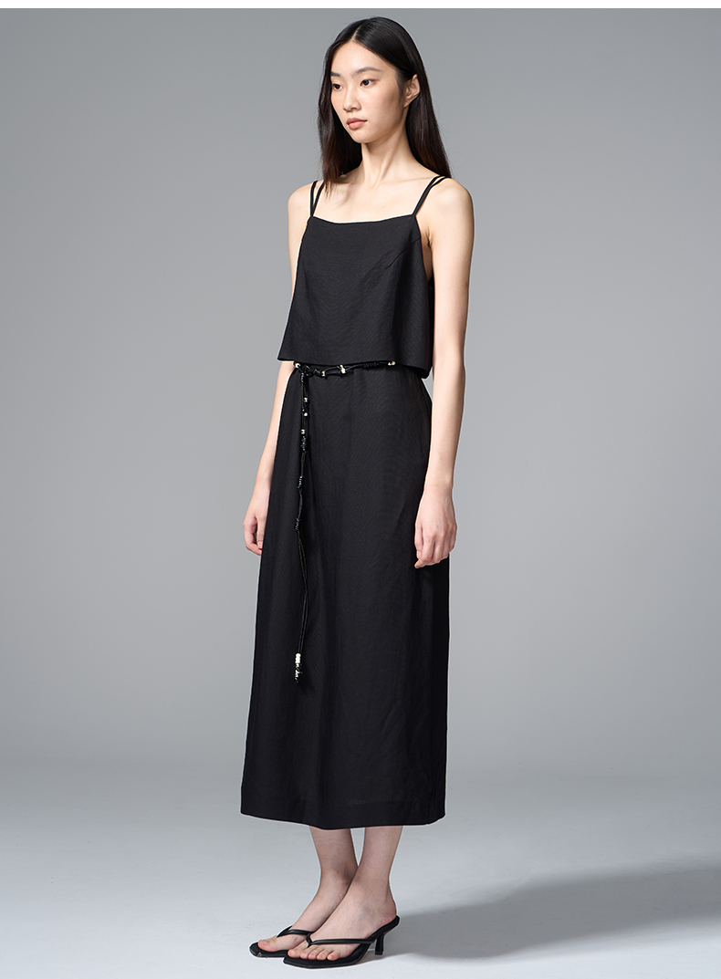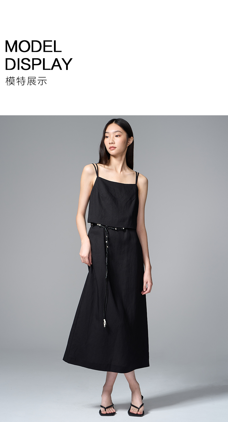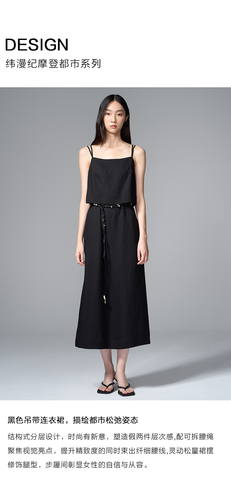 VIMAGE纬漫纪气质通勤显瘦收腰假两件黑色吊带连衣裙2025秋季新款V2407104