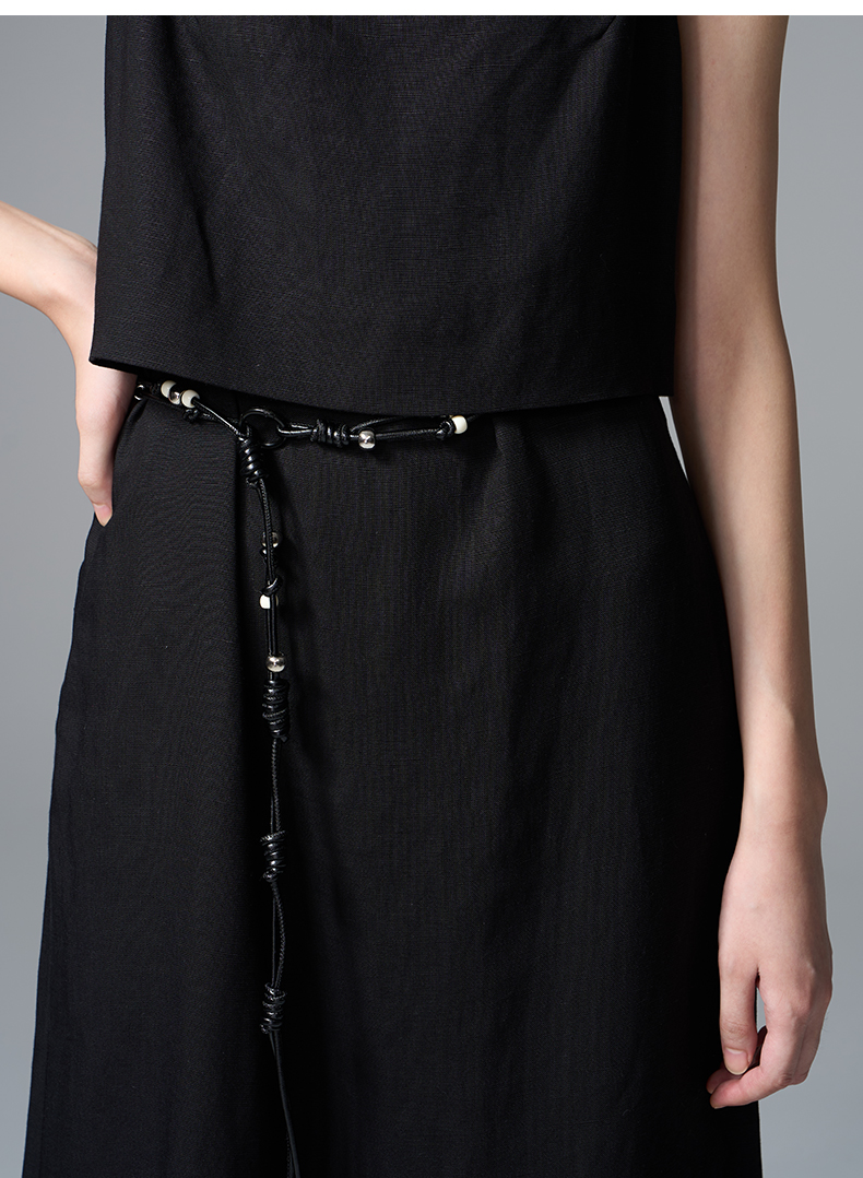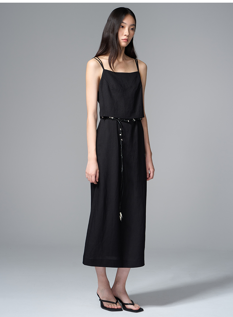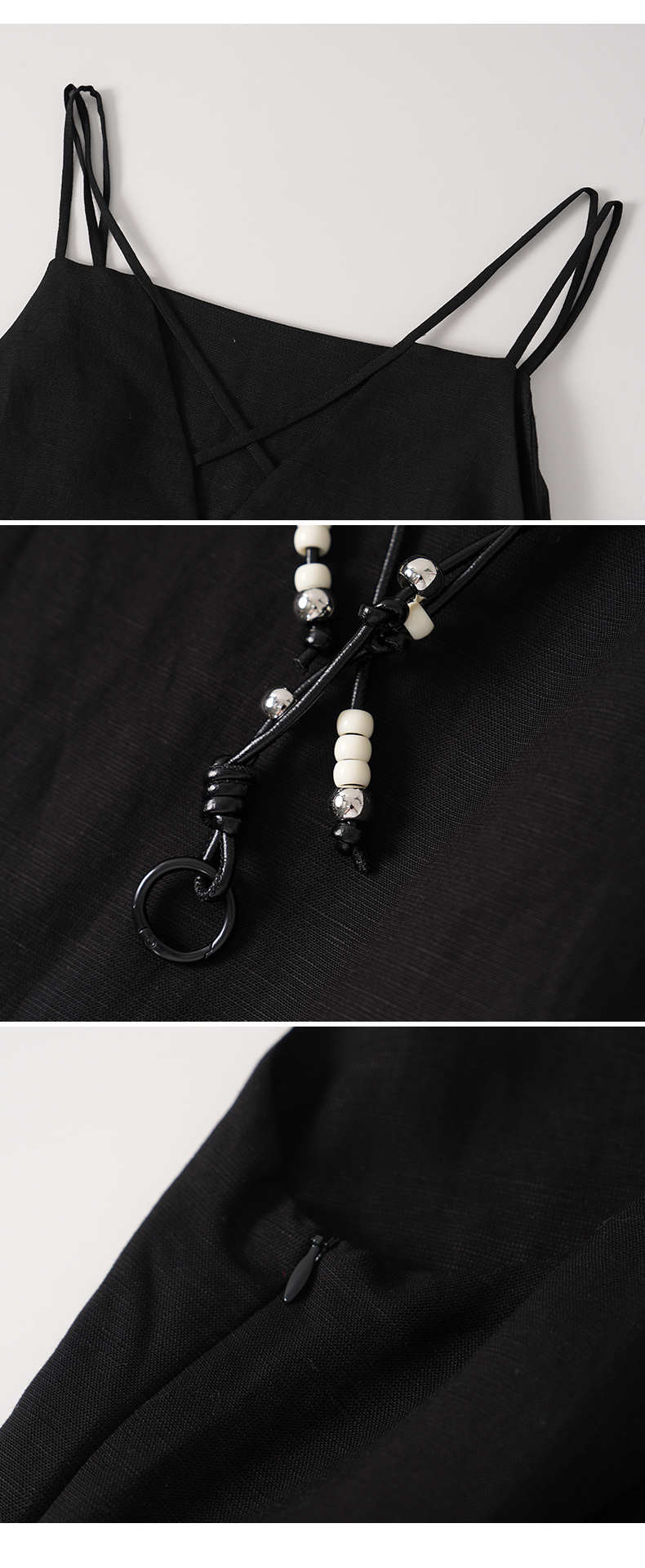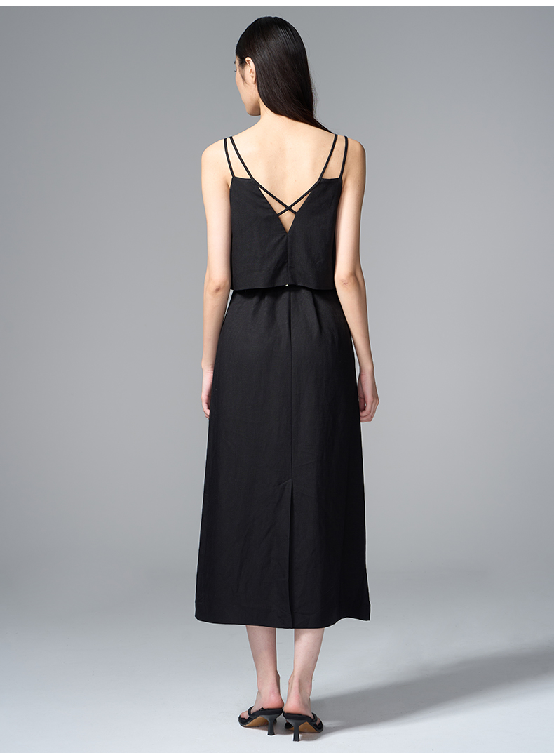 VIMAGE纬漫纪气质通勤显瘦收腰假两件黑色吊带连衣裙2025秋季新款V2407104