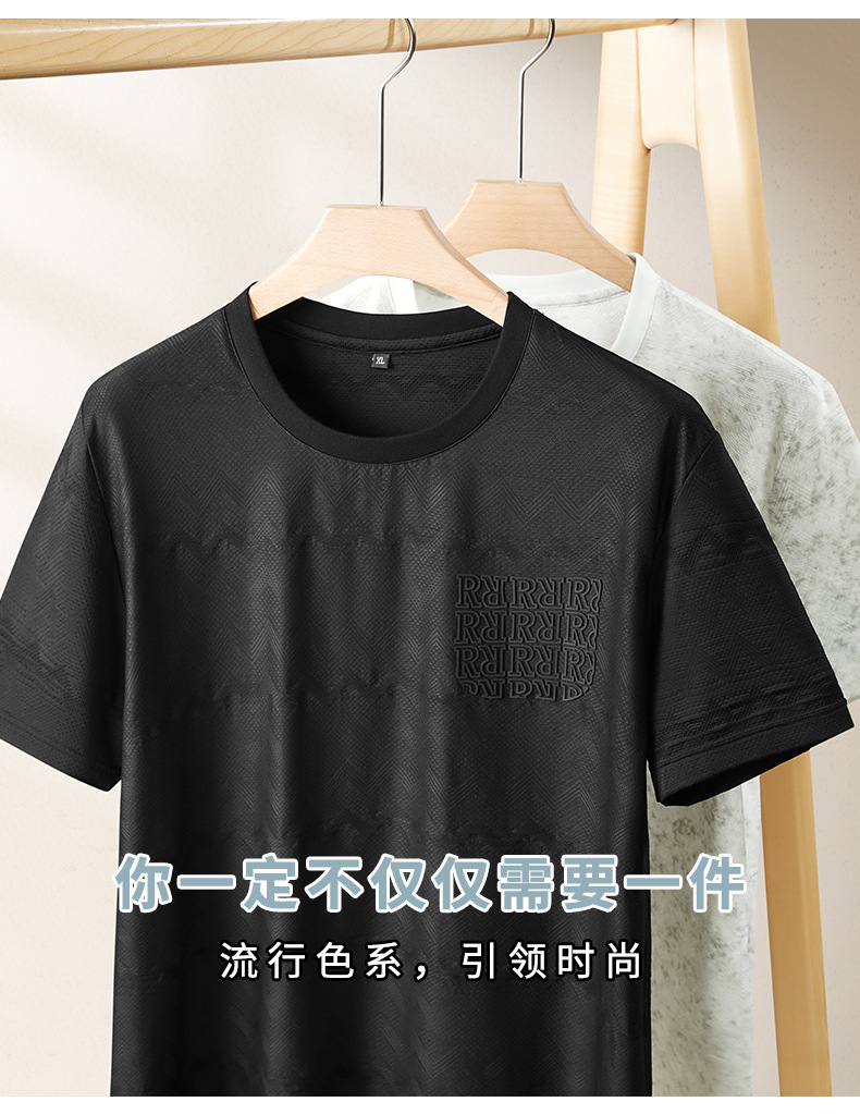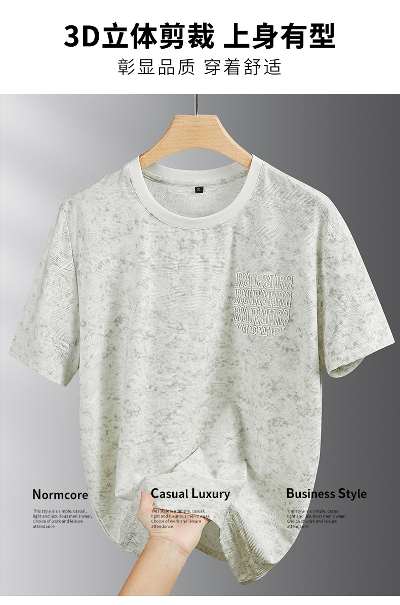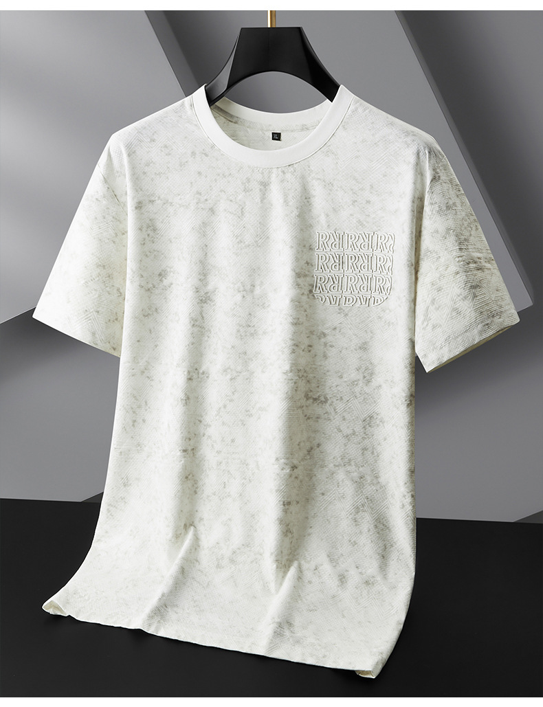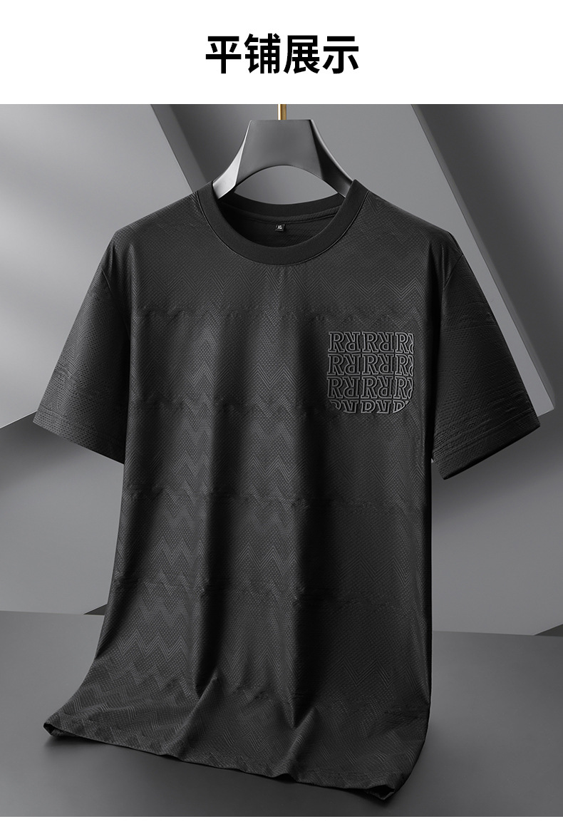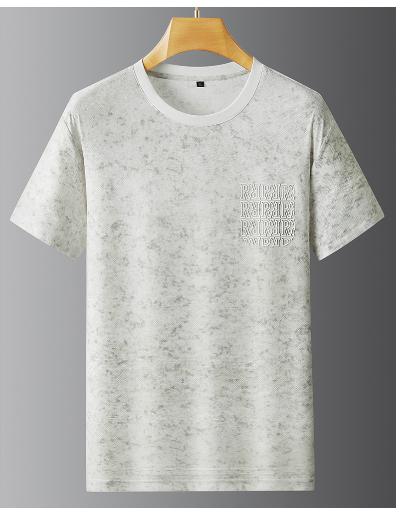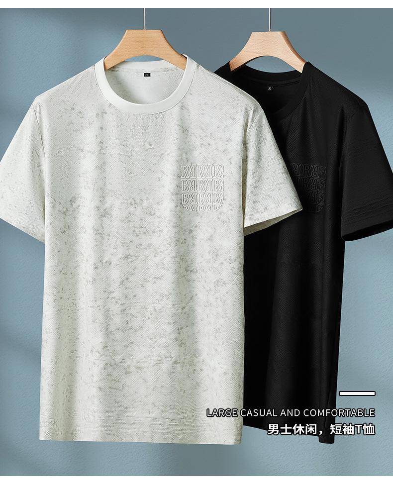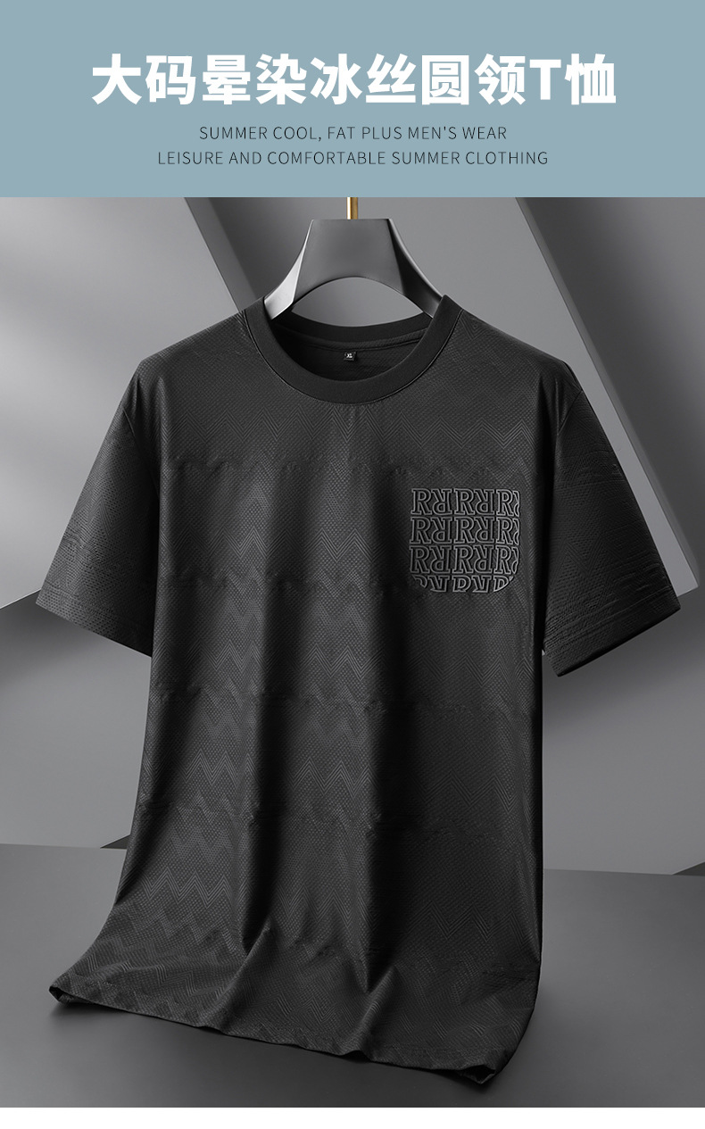 【冰丝】【DPF】大依优型大码短袖T恤晕染冰丝圆领半袖运动弹力夏装肥佬休闲凉感上衣男士
