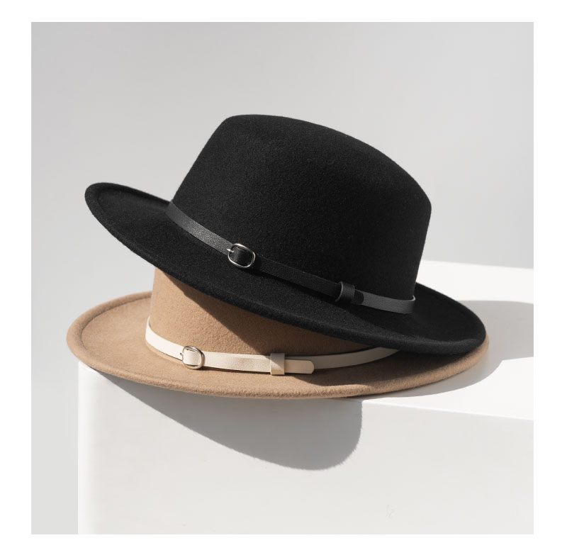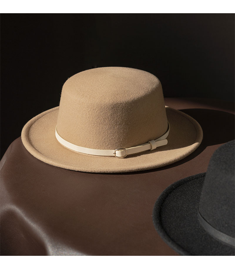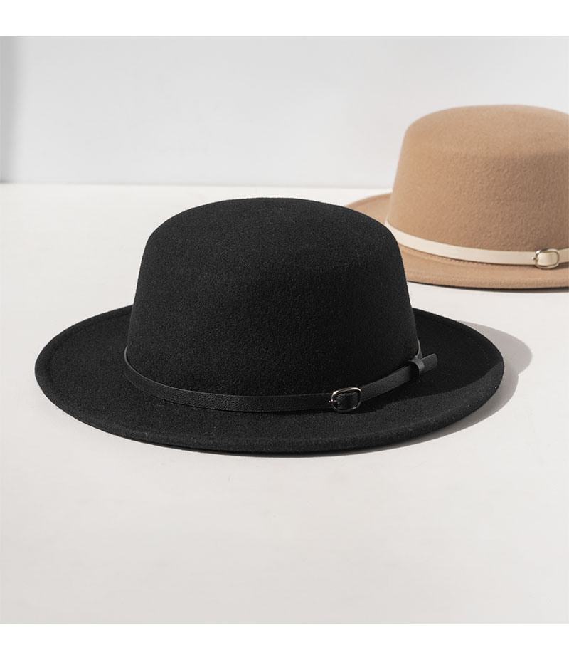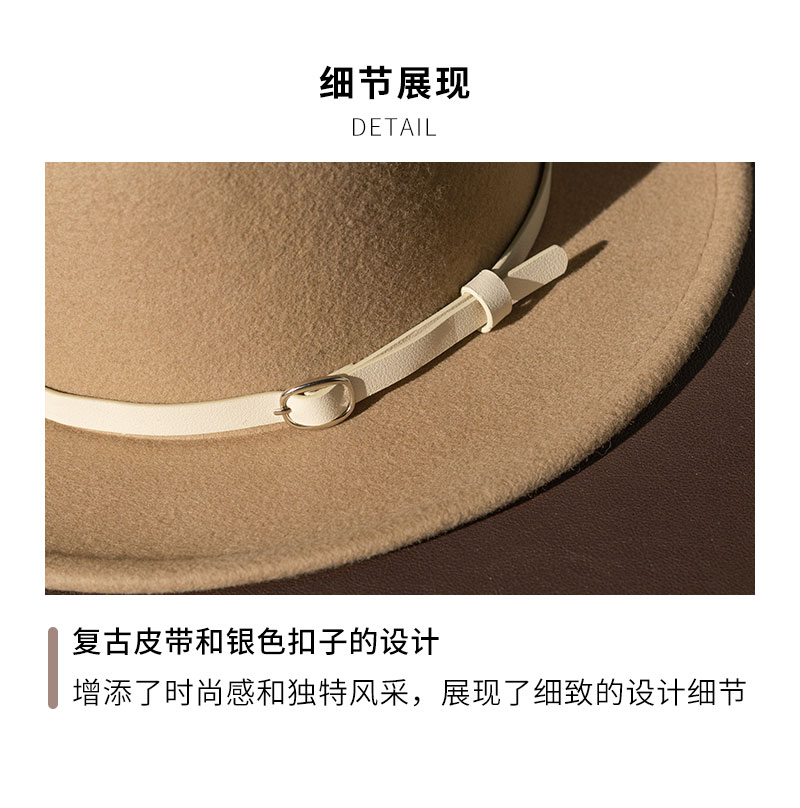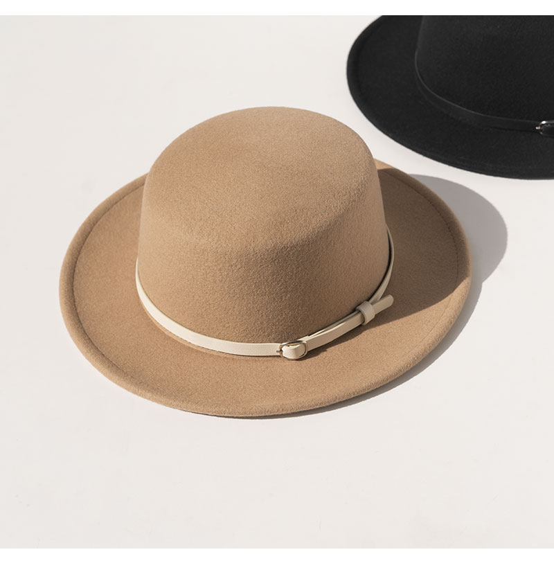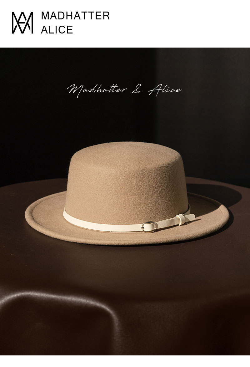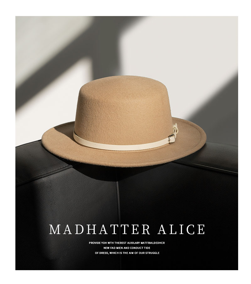 YL178疯帽子与爱丽丝 英伦复古羊毛呢礼帽子女帅气皮带平顶帽保暖毡帽秋冬新款