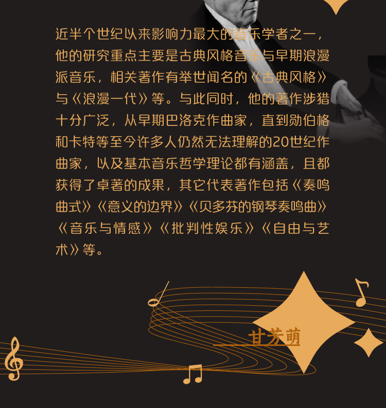 没有人比查尔斯·罗森更了解音乐。不论是对于我们所熟悉的还是陌生的音乐,罗森都不仅有着非同一般的敏锐听觉和敏感度,还一次又一次地洞察到使音乐与众不同、精妙绝伦的特点。