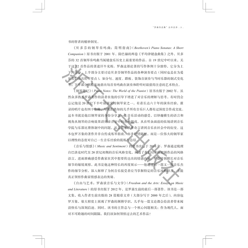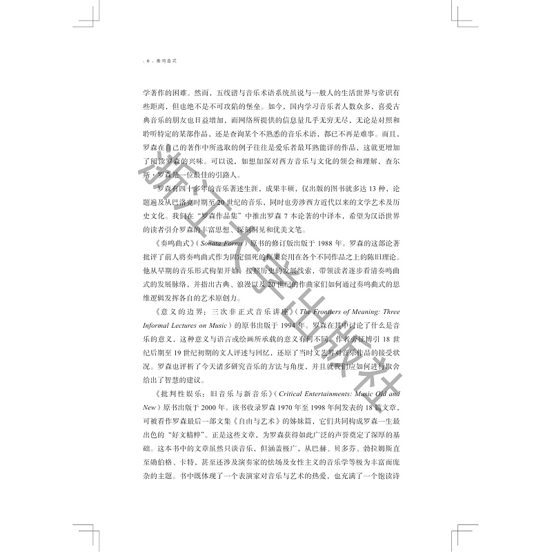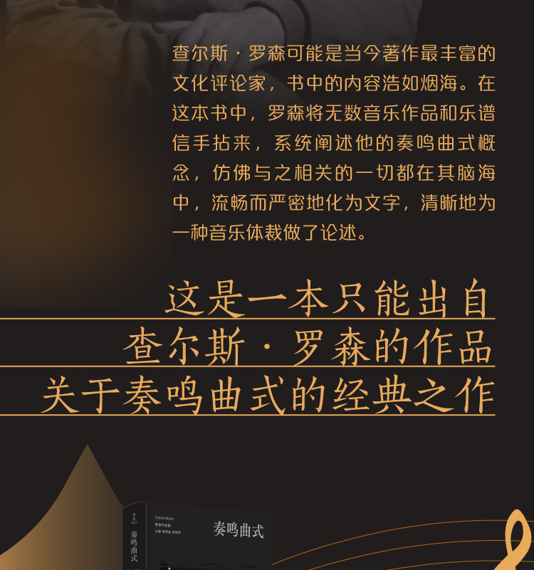 查尔斯·罗森可能是当今著作zui丰富的文化评论家,书中的内容浩如烟海。在这本书中,罗森将无数音乐作品和乐谱信手拈来,系统阐述他的奏鸣曲式概念,仿佛与之相关的一切都在其脑海中,流畅而严密地化为文字,清晰地为一种音乐体裁做了论述。