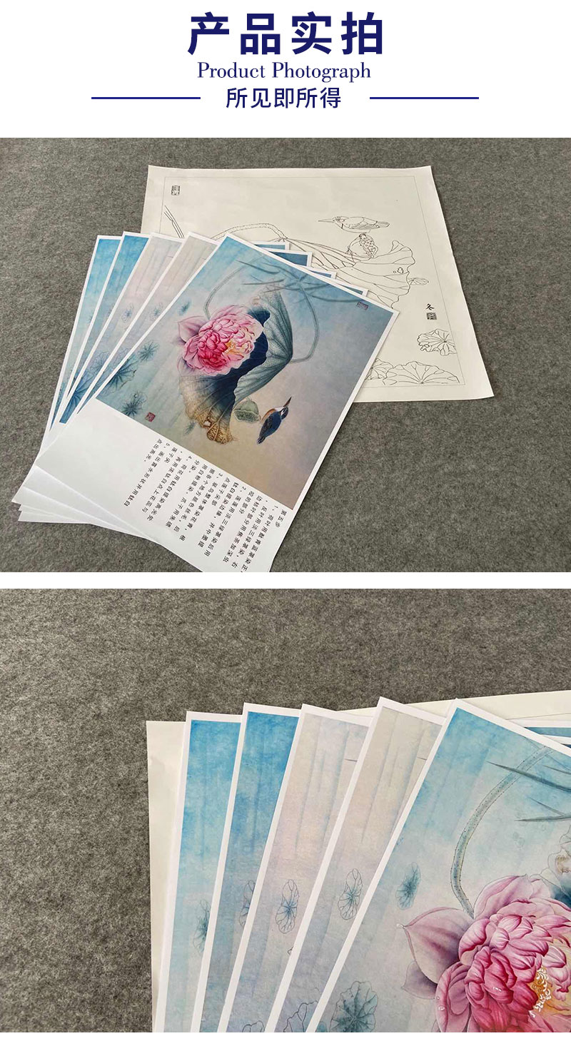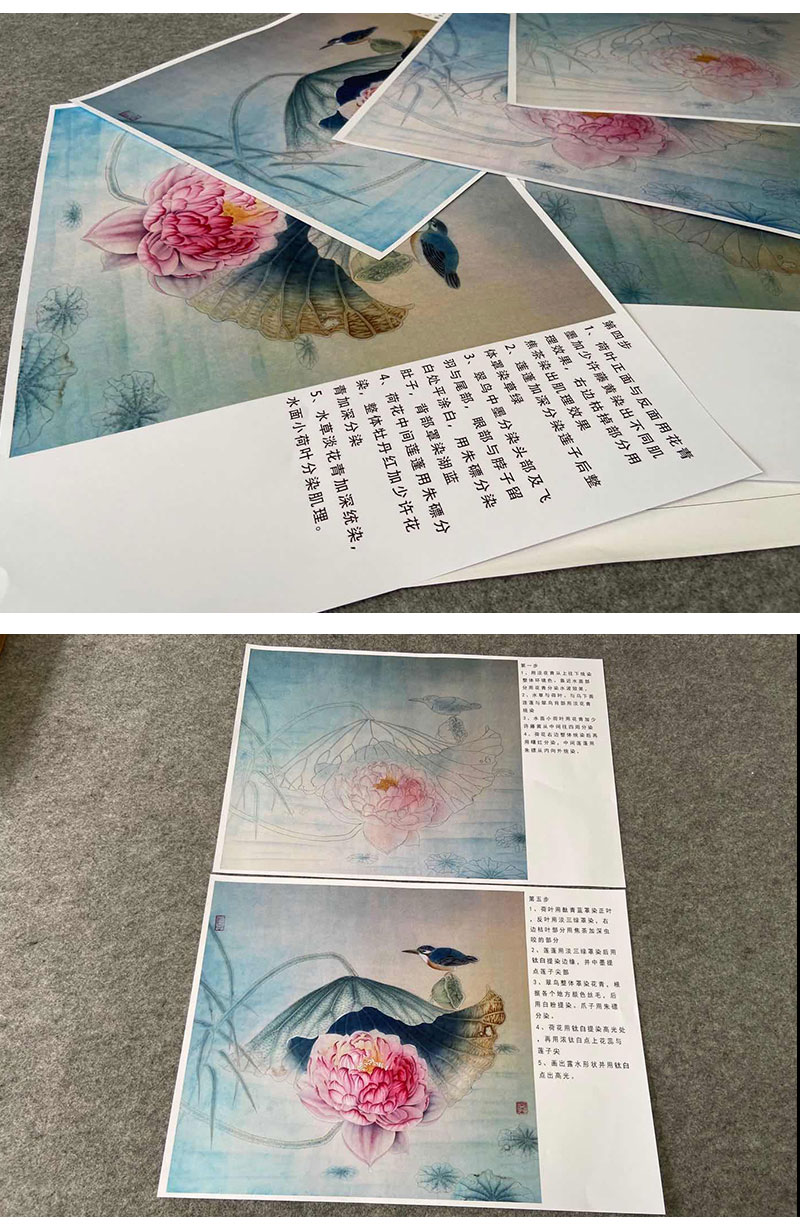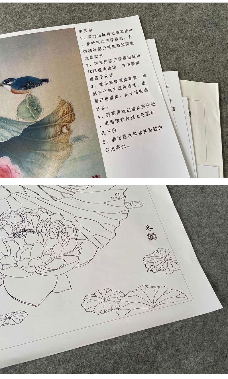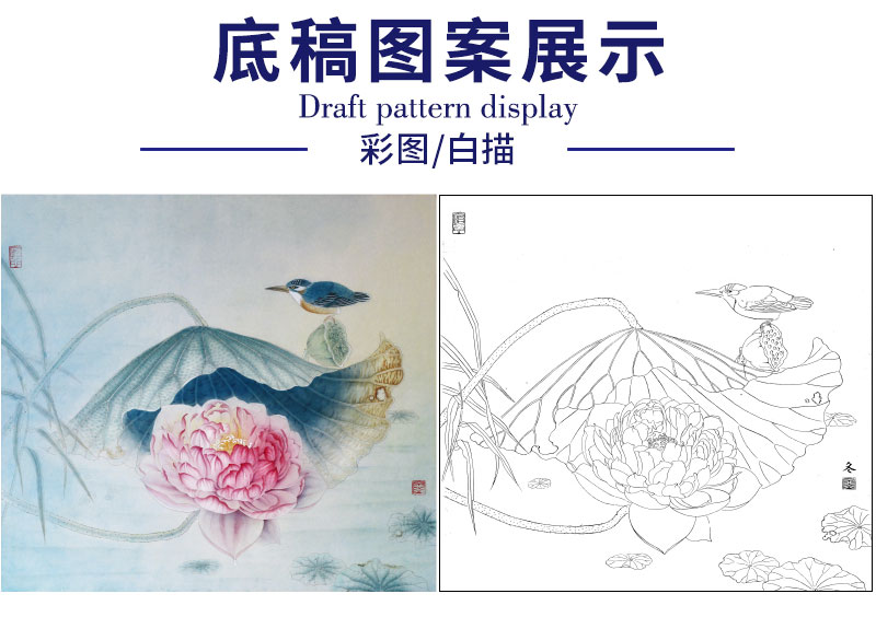 【有步骤、大彩图】杨冬冬工笔画白描底稿斗方小品《池上仙子》荷花翠鸟初学者临摹花鸟线稿HD46