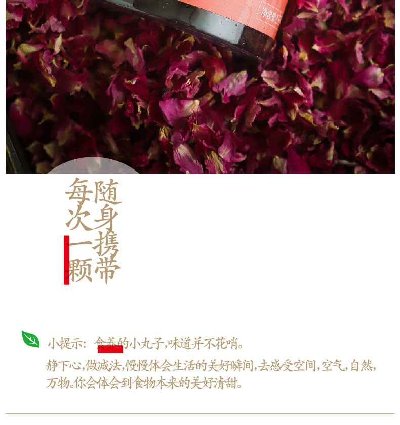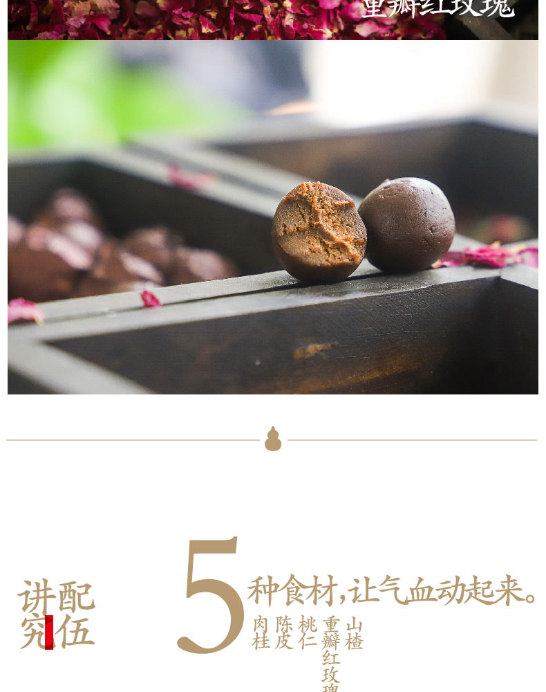 玫瑰桃仁球道地食材。山楂重瓣红玫瑰桃仁陈皮肉桂。玫瑰香