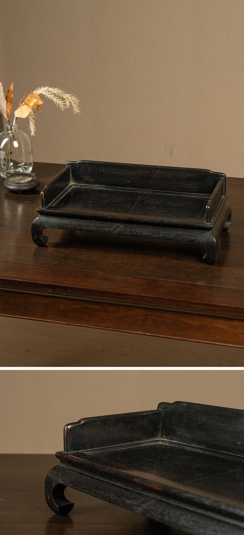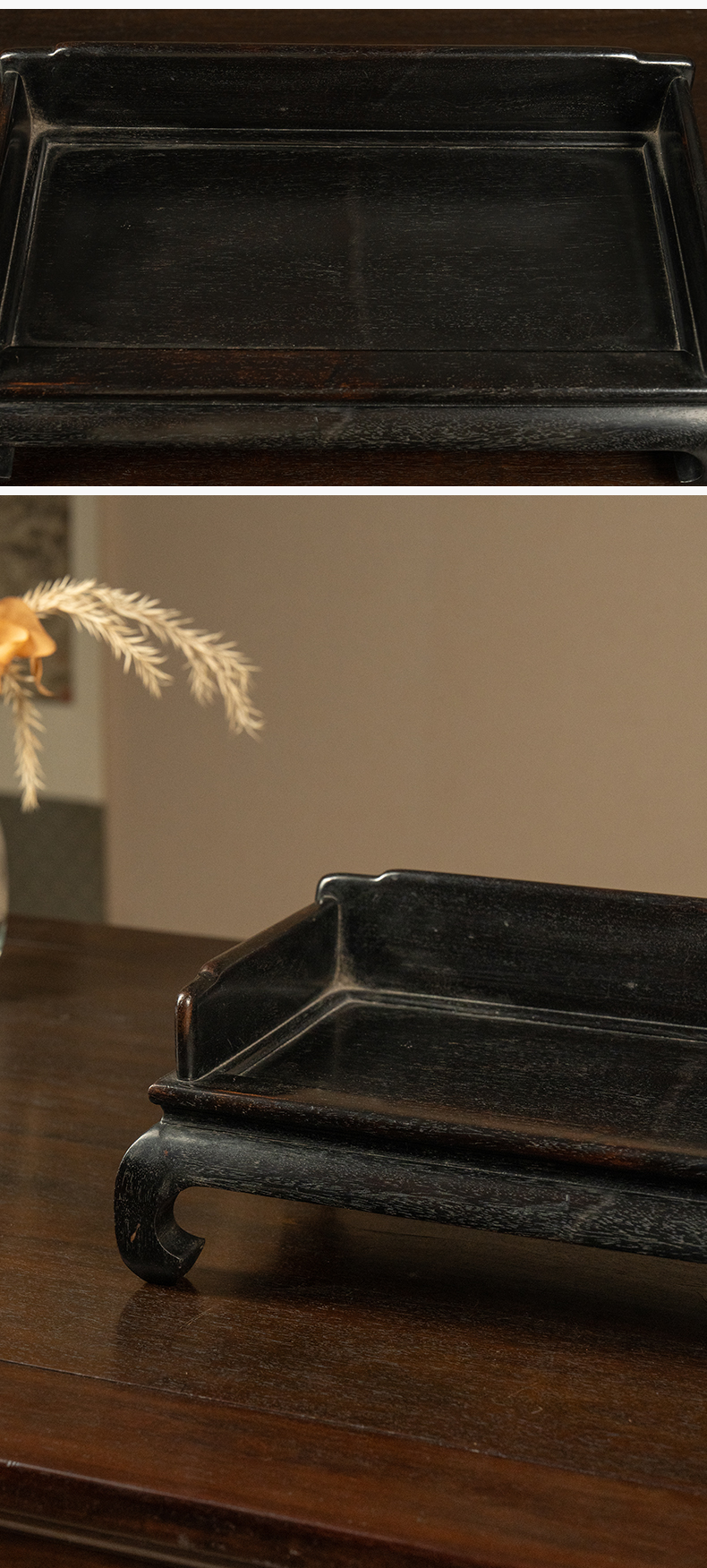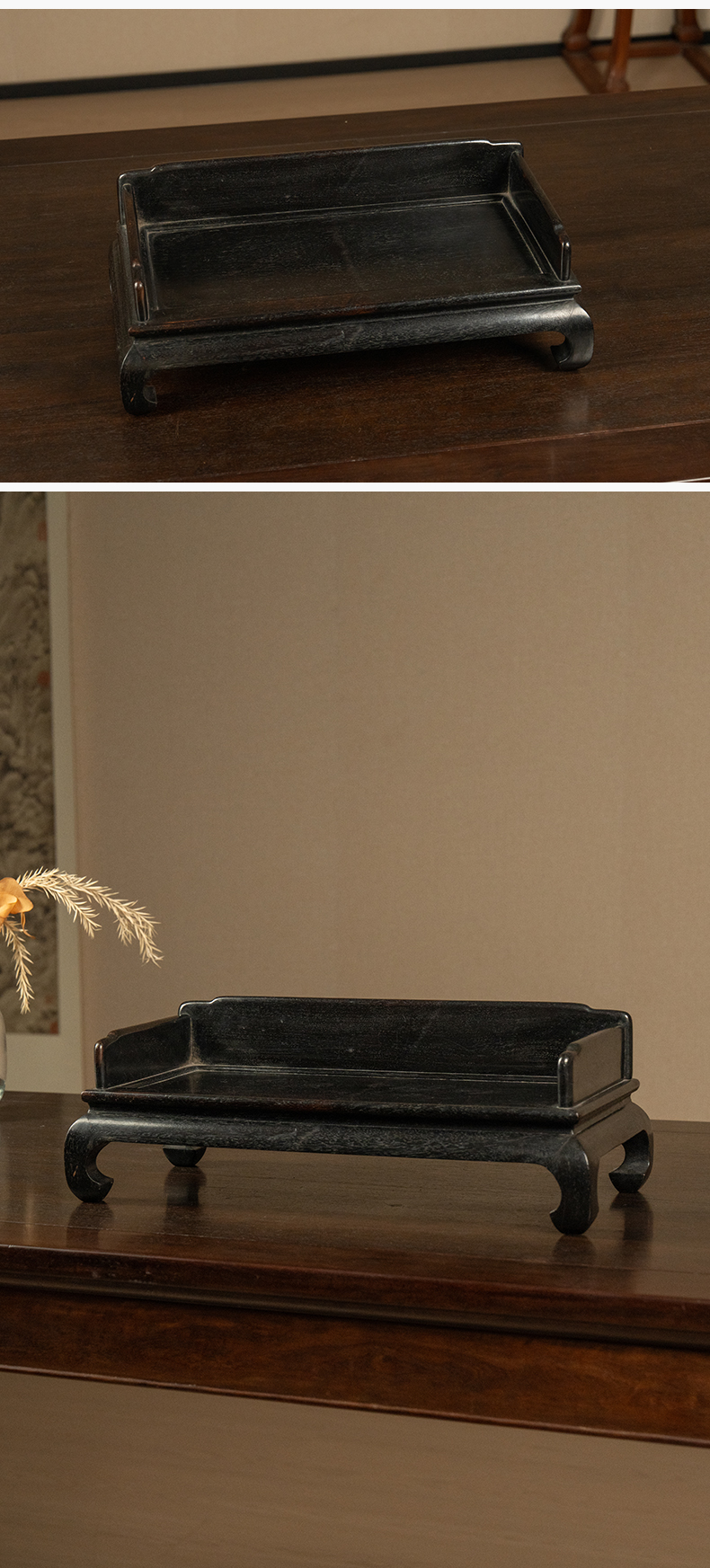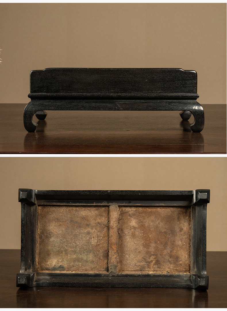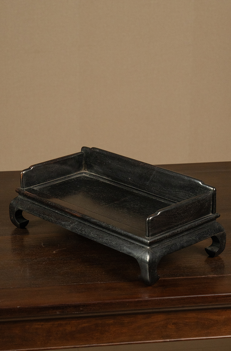黑太湖文房赏石(红木座)